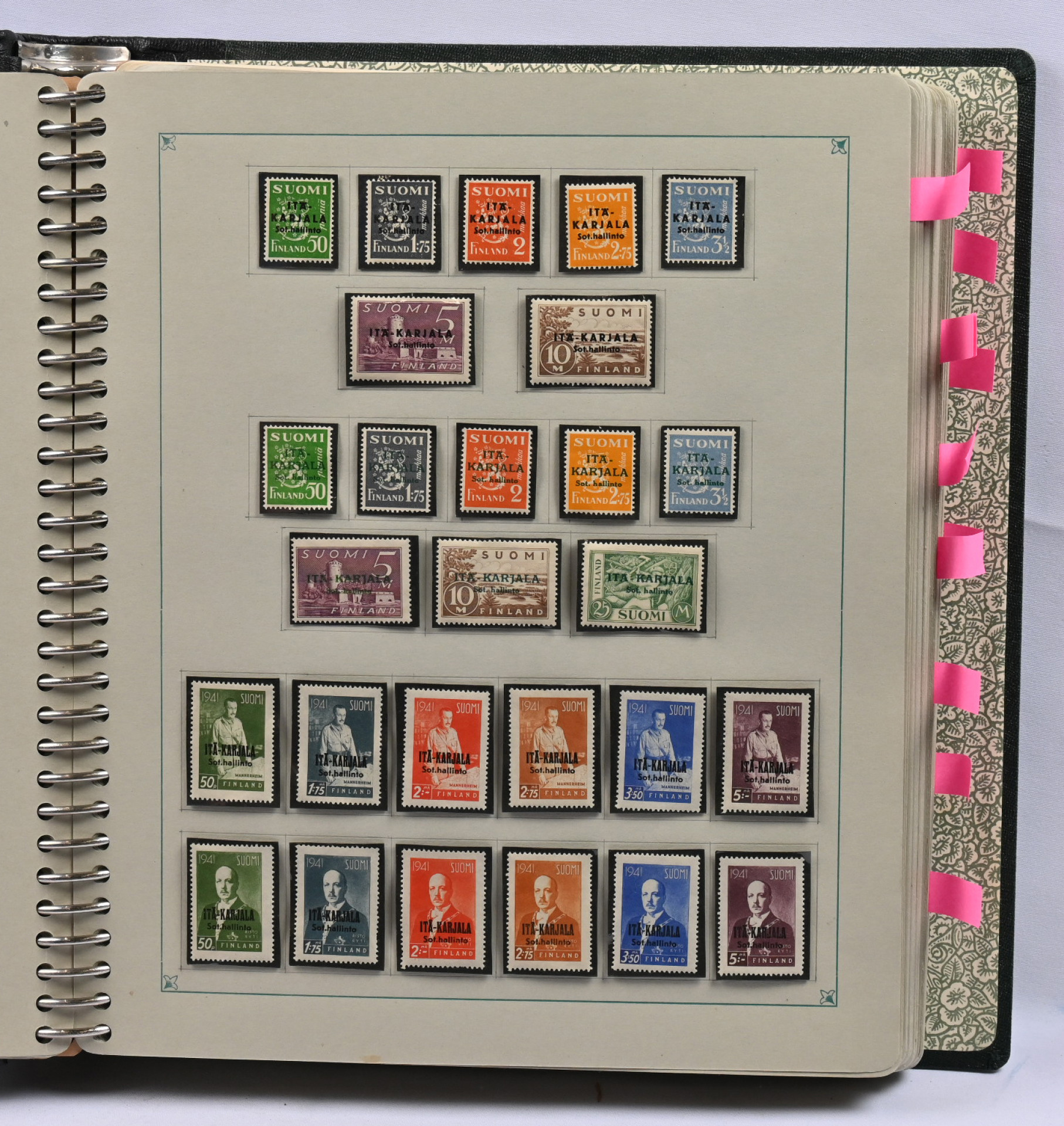 Kahdessa kansiosa monipuolinen erä Suomea ja ulkomaita. Toisessa vain postituoretta **, monia hyviä sarjoja (mm. Reich Mi 529-537, 450€, Italia Mi 100-103), Suomen punaristi-sarjoja, Ranskan siirtomaiden 1937 näyttely-sarjoja ym. Toisessa kansiossa uudempaa postituoretta ** ja myös vähän leimattua.
