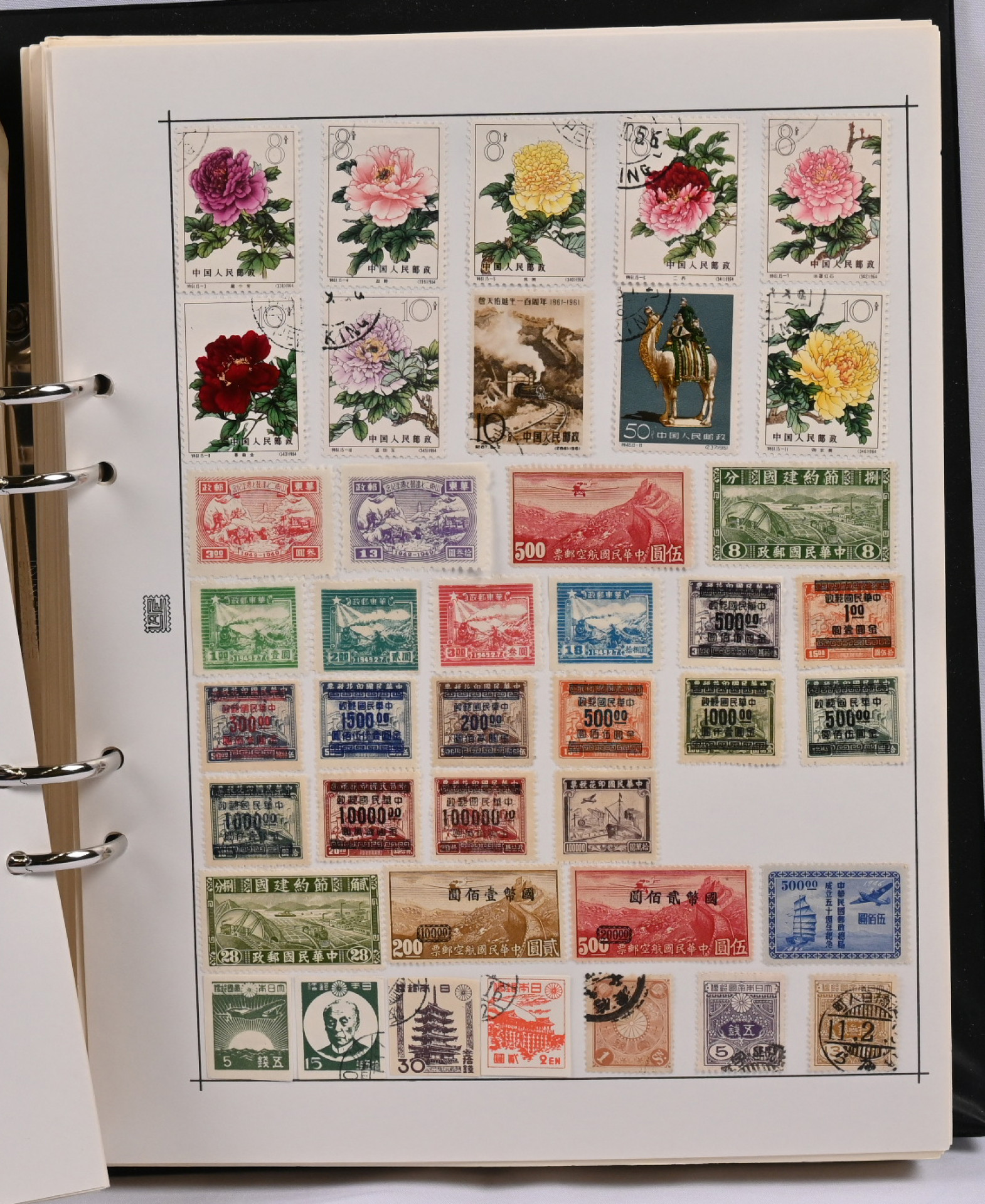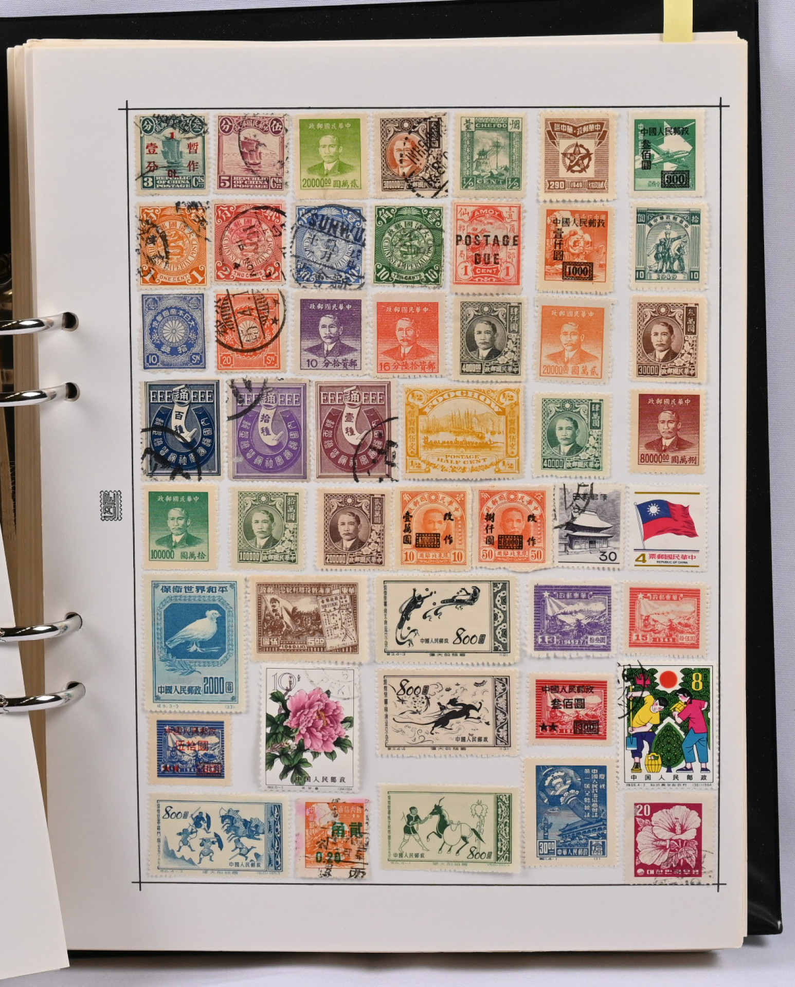 Laaja koko maailma kokoelma yhdeksässä paksussa albumissa osittain maittain, osittain aiheittain. Tuhansia ja tuhansia merkkejä laidasta laitaan, mm. uudempaa aihemateriaalia, vanhoja siirtomaiden merkkejä, kaukomaita, Kiinaa, leimattua, leimaamatonta, pienoisarkkeja ym. ym. Mukana myös keskihintaista materiaalia, mm. Kiinaa, Baltian maita (mm. Punaisen Ristin 5+7 markan keskeltä hammastamaton pystypari nelilössä) jne. Lisäksi kolmessa säiliökirjassa lisämateriaalia, mm. Sveitsiä sekä kolmessa kansiossa kuorimateriaalia, lähinnä ruotsalaisia FDC-kuoria