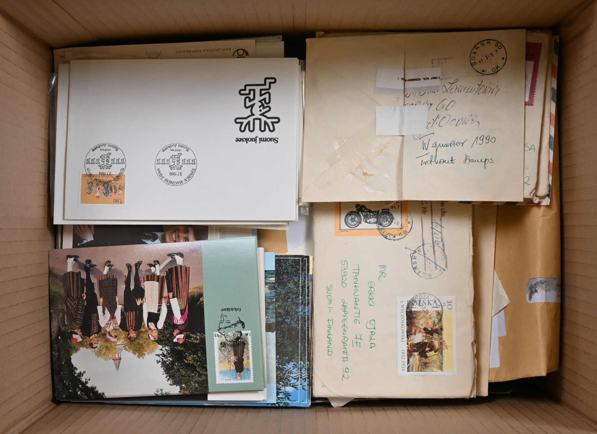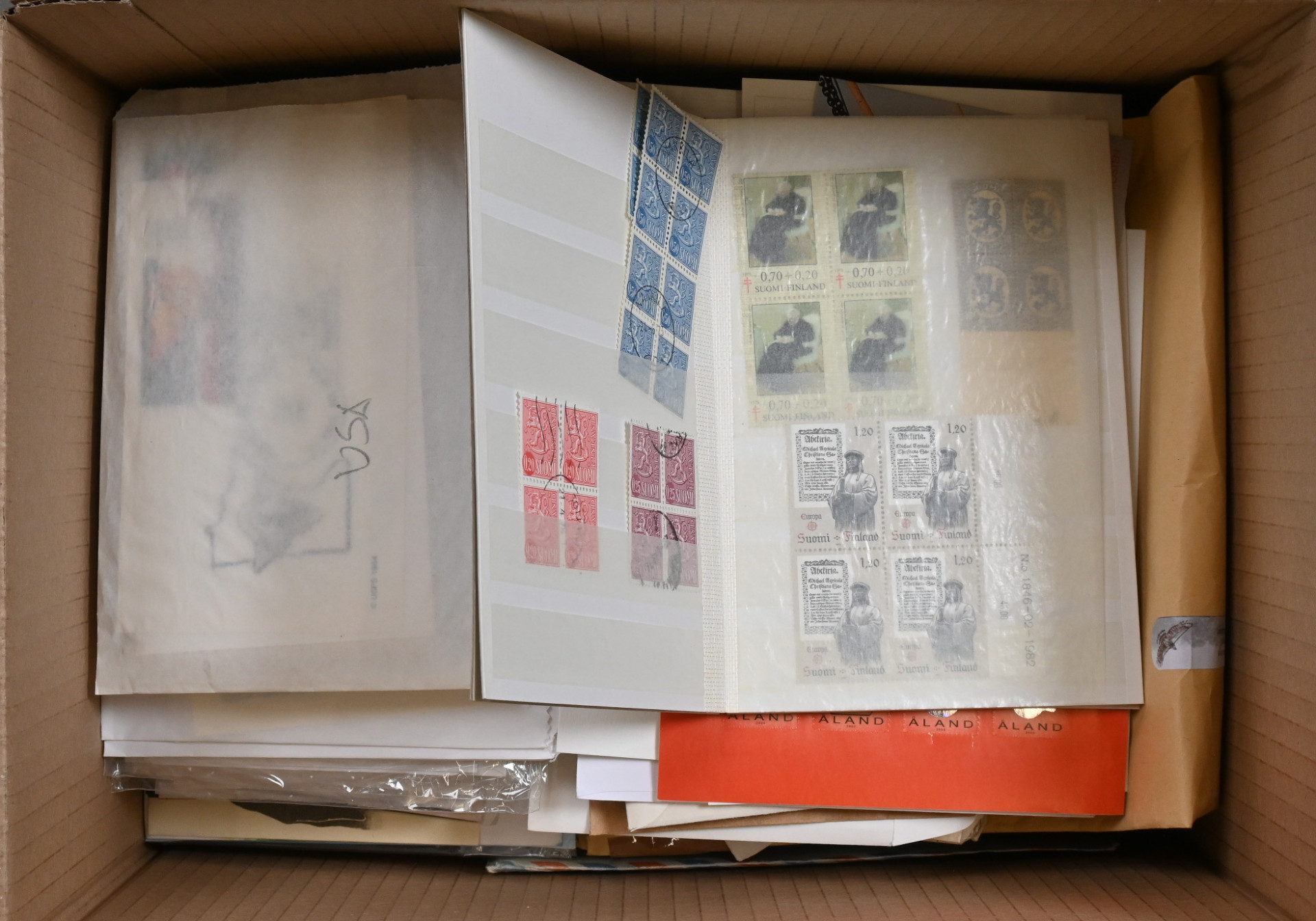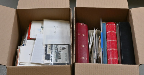 Sekalainen materiaali uudempaa ja vanhempaa materiaalia eri puolilta maailmaa kahdessa laatikossa, yht yli 14 KG. Paljon pieniä teemalajitelmia, merkkejä säiliökirjoissa/albumeissa, värikkäitä aihejulkaisuja, myös postilähetyksiä, maksikortteja jne. Materiaalia laidasta laitaan - tekemistä ja lajittelemista pitkäksi aikaa!