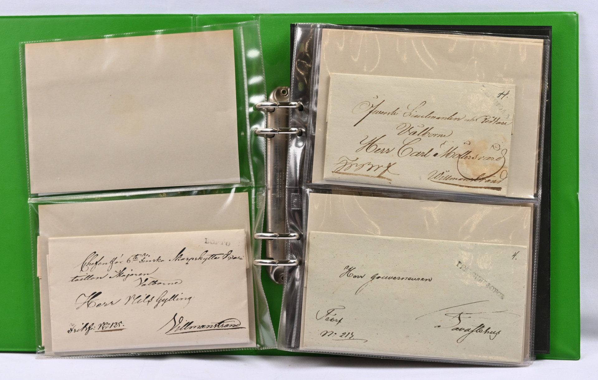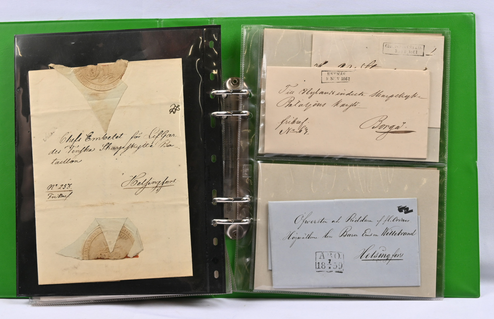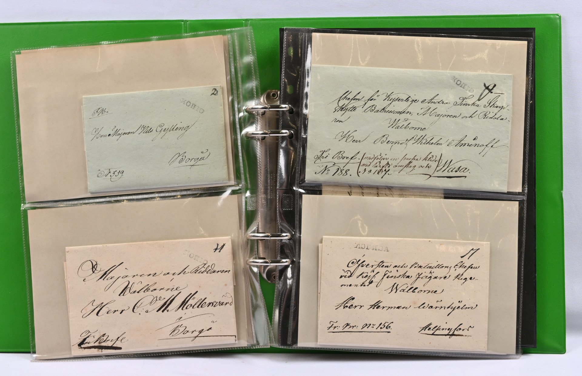 Leimakirjeitä erä yli 20 kpl kansiossa mm. kyrilliset Björneborg, Kuopio, Lovisa ym