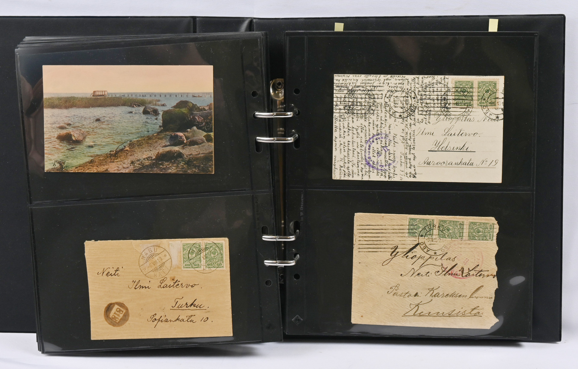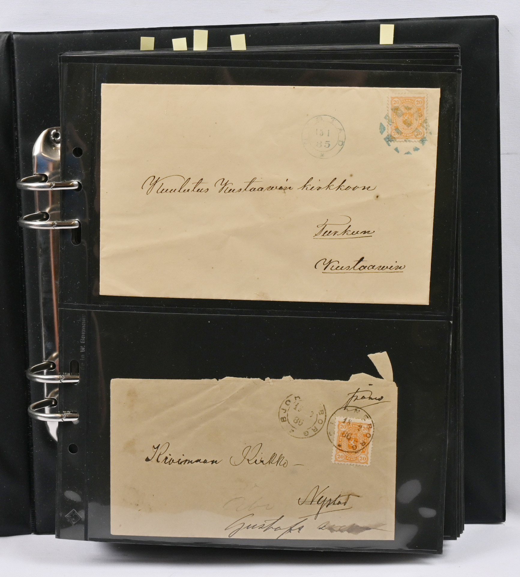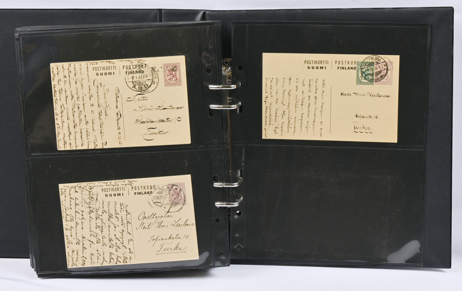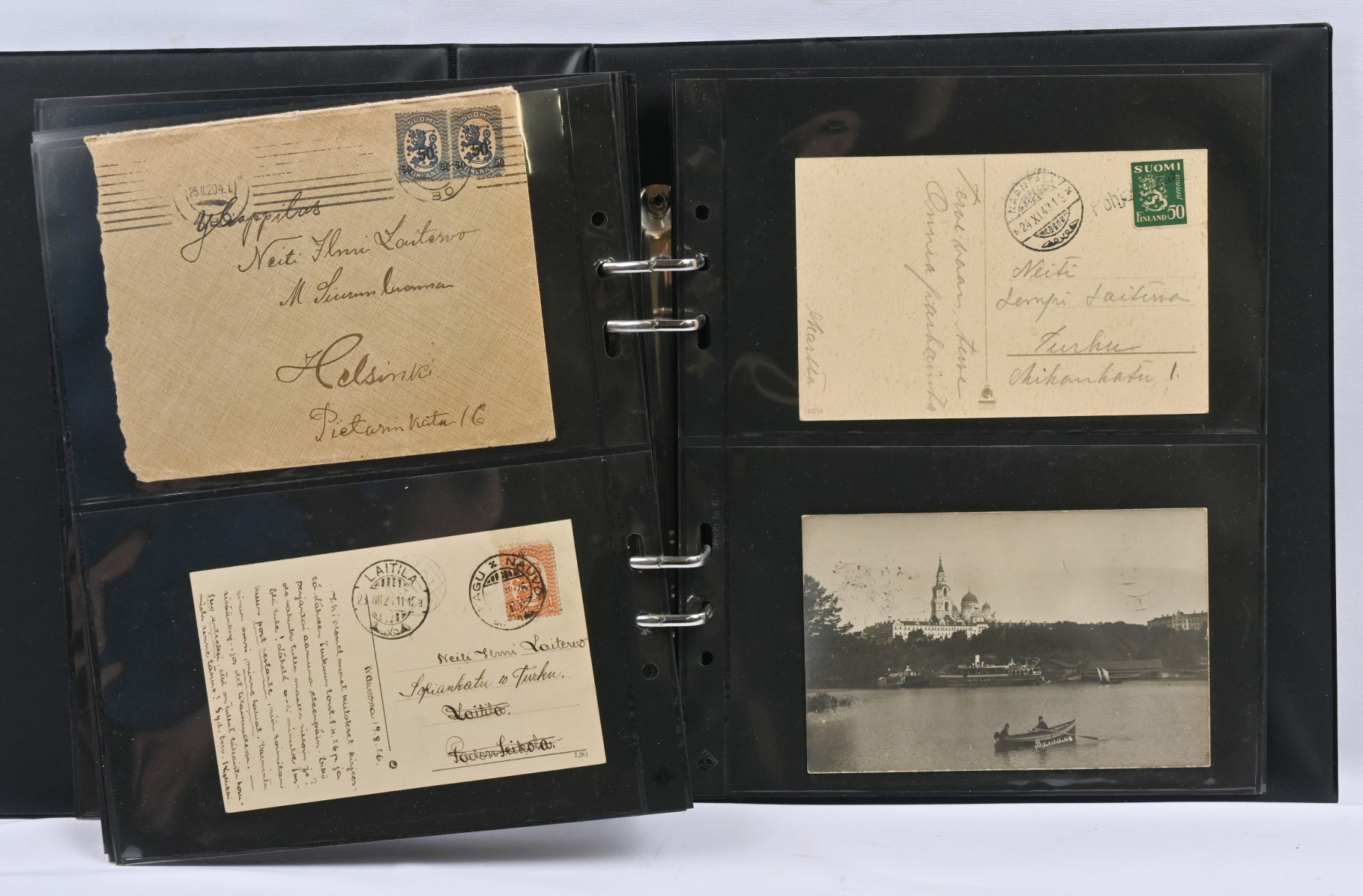 Vanhasta 1970-luvun alkuun kiintoisa erä kahdessa kansiossa lähetyksiä ja kuvakortteja mm eri paikkakuntia. Mukana myös m/89 kuvioleimallinen kirje Nystad 1885, sensruuria, junapostia jne