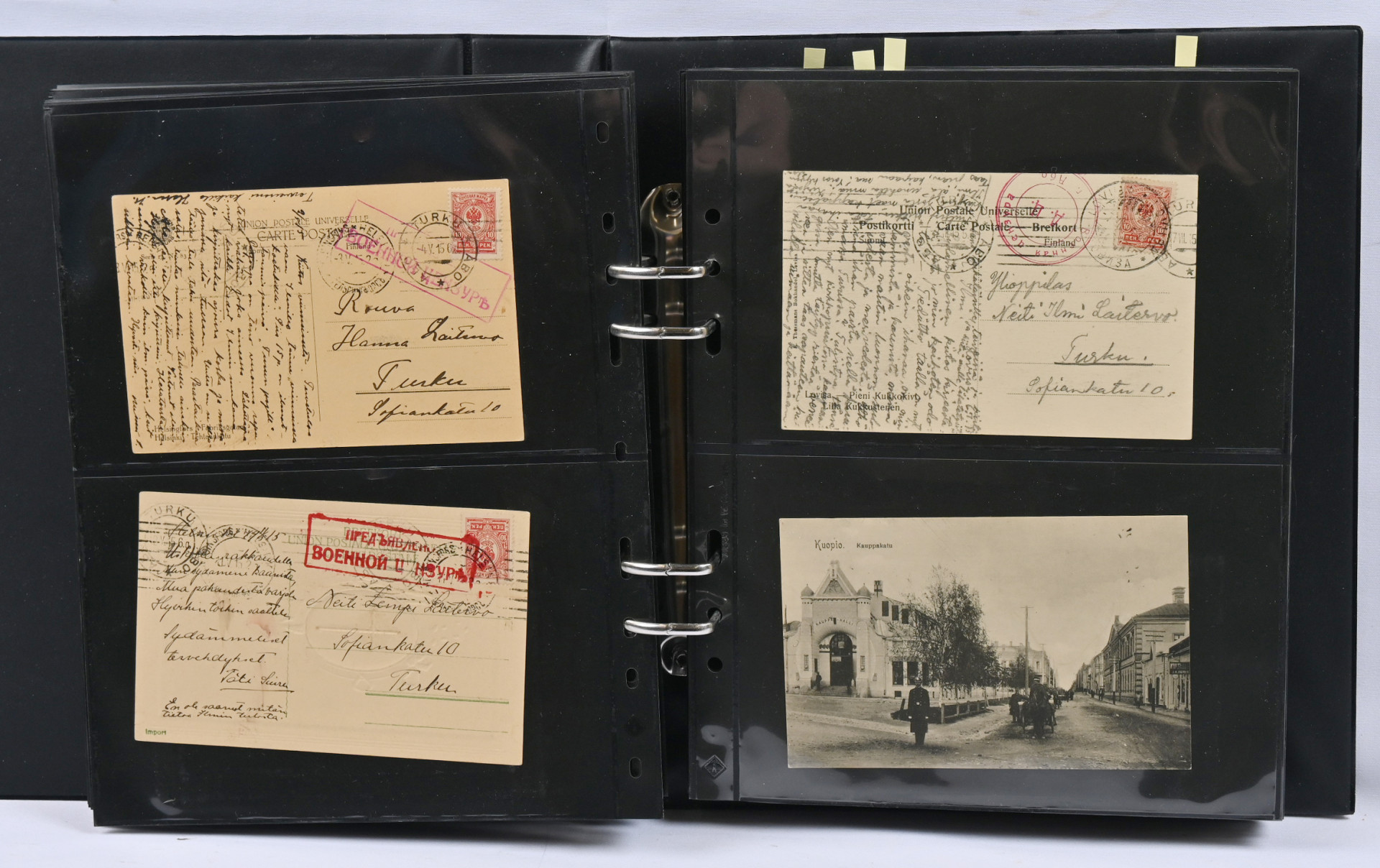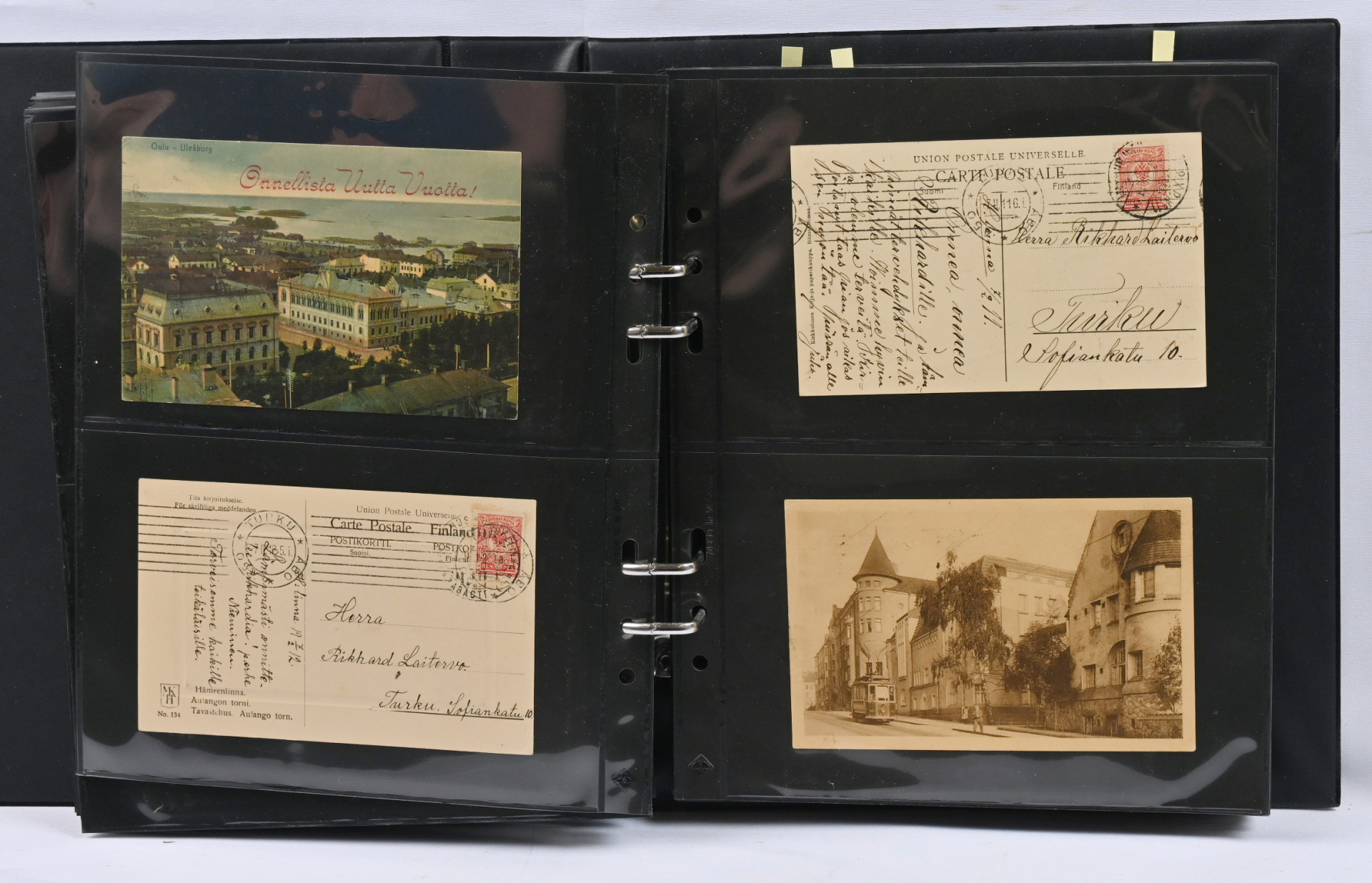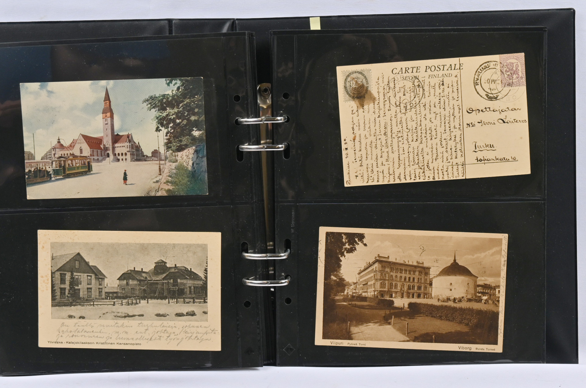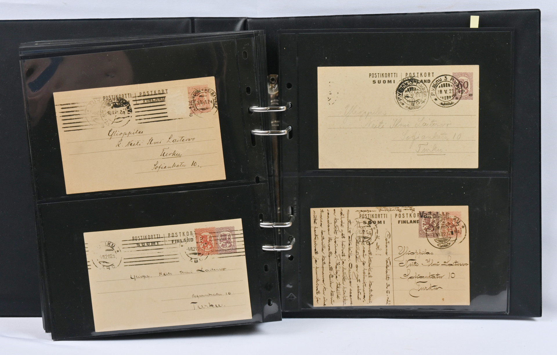 Vanhasta 1970-luvun alkuun kiintoisa erä kahdessa kansiossa lähetyksiä ja kuvakortteja mm eri paikkakuntia. Mukana myös m/89 kuvioleimallinen kirje Nystad 1885, sensruuria, junapostia jne