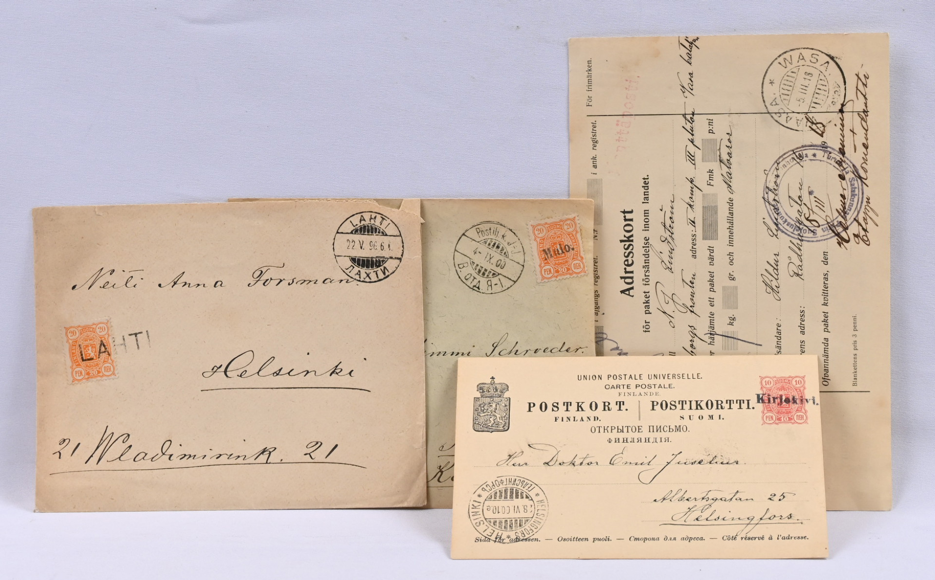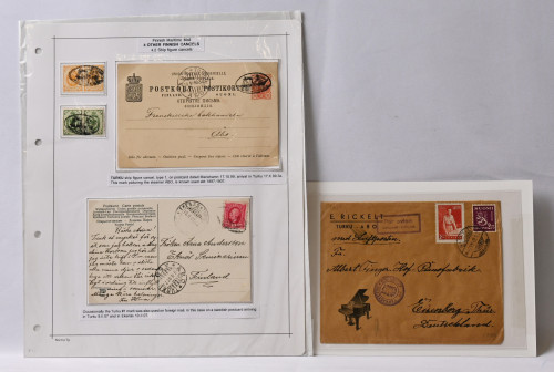 Seitsemän hyvää lähetystä. Kolme pysäkkileimaa, kaksi laivankuvaleimaa, kenttäpostin pakettikortti ja Saksan erikoistaksa 1942