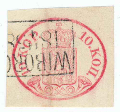 Tiheäjuovainen paperi 10 kop leveät reunat, hieno Wiborg 1858 mutta taite, pientä ohentumaa ja ajan patinaa. Aitoutus: Schwenson (2013)