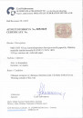 Harvajuovainen paperi 10 kop karmiininpunainen, kahdelta sivulta hyvät reunat, erittäin kaunis Raumo 1859. Pientä ohentumaa. Aitoutus: Schwenson (2025)