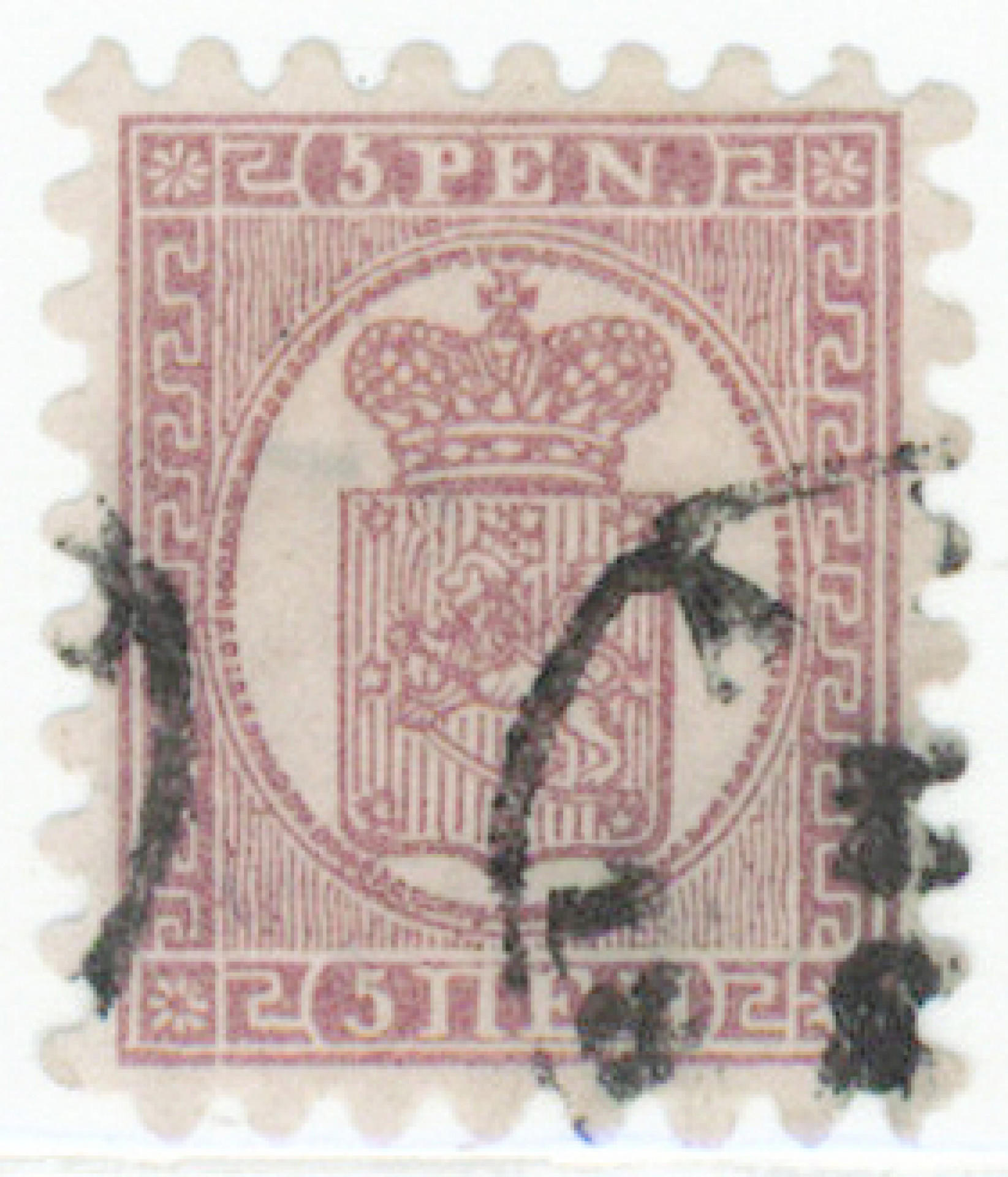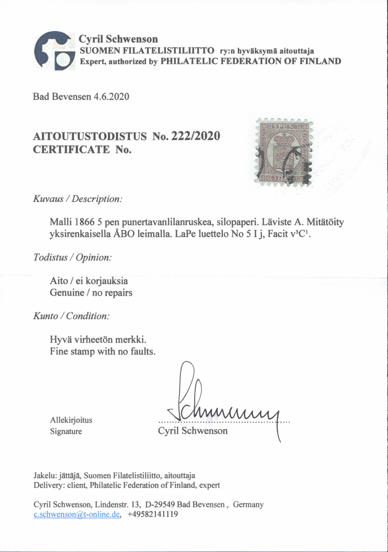 5 penniä I punertavanlilanruskea, silopaperi, kaunis kaksileimainen Åbo. Hieno merkki! (L. 5 Ij) Aitoutus: Schwenson (2020)