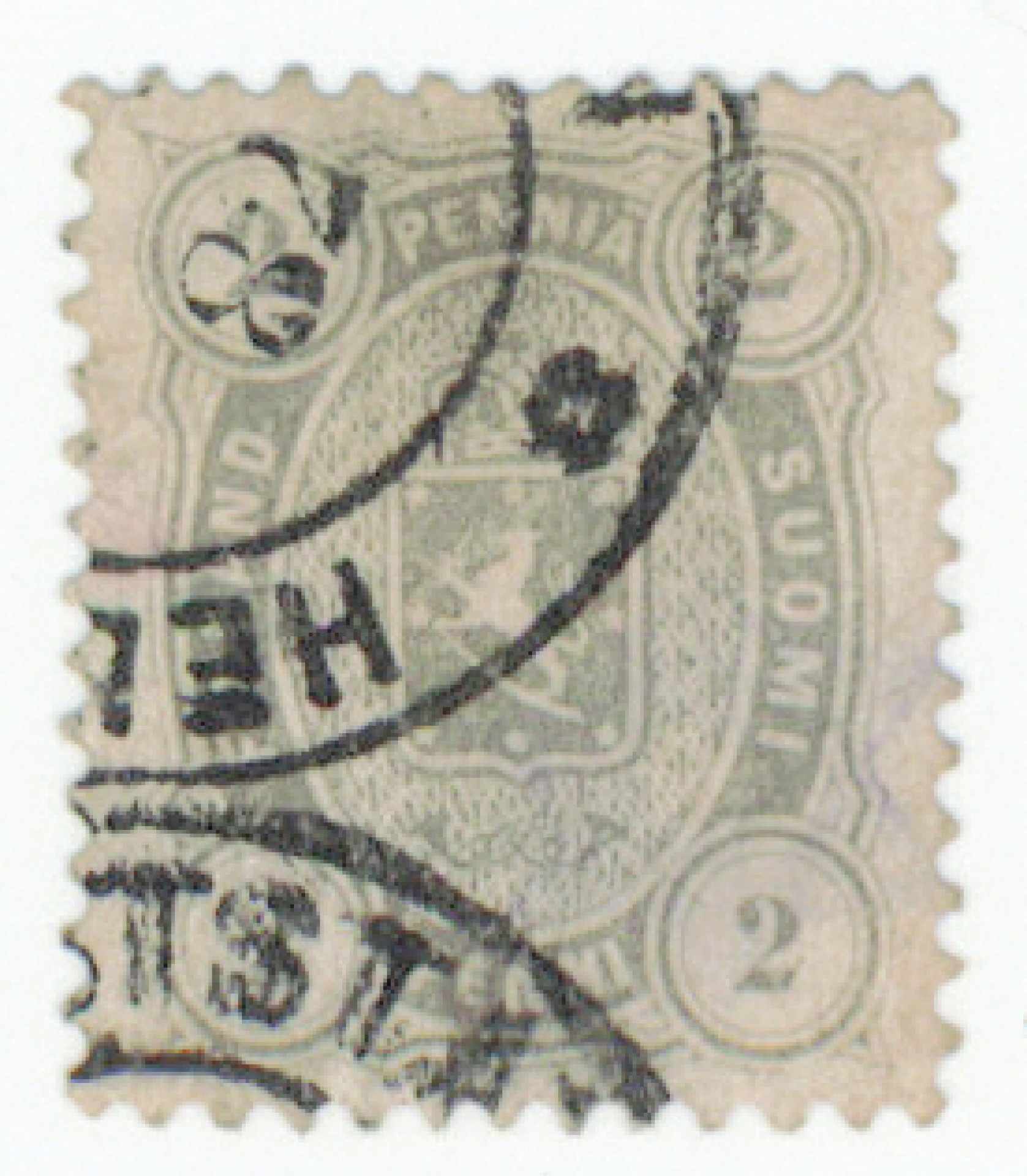 2 penniä B -hampainen, kaunis Helsingfors Poststation 1882. Takana violetti leimaus (L. 12SB)