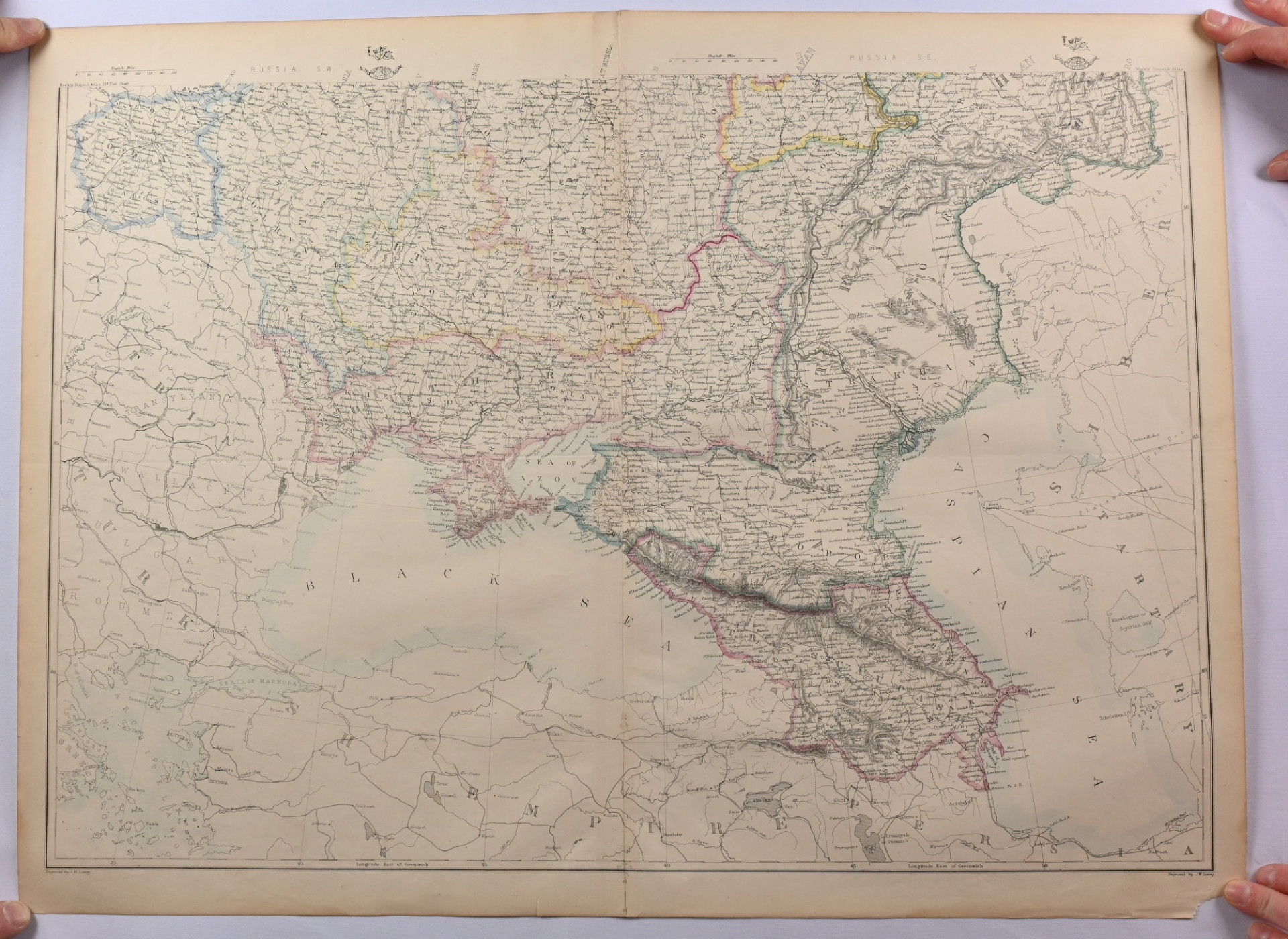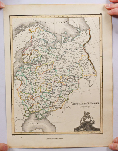 Karttoja 1800-luvulta erä pääosissa Venäjä. Tavanomaista käyttökulumaa tms