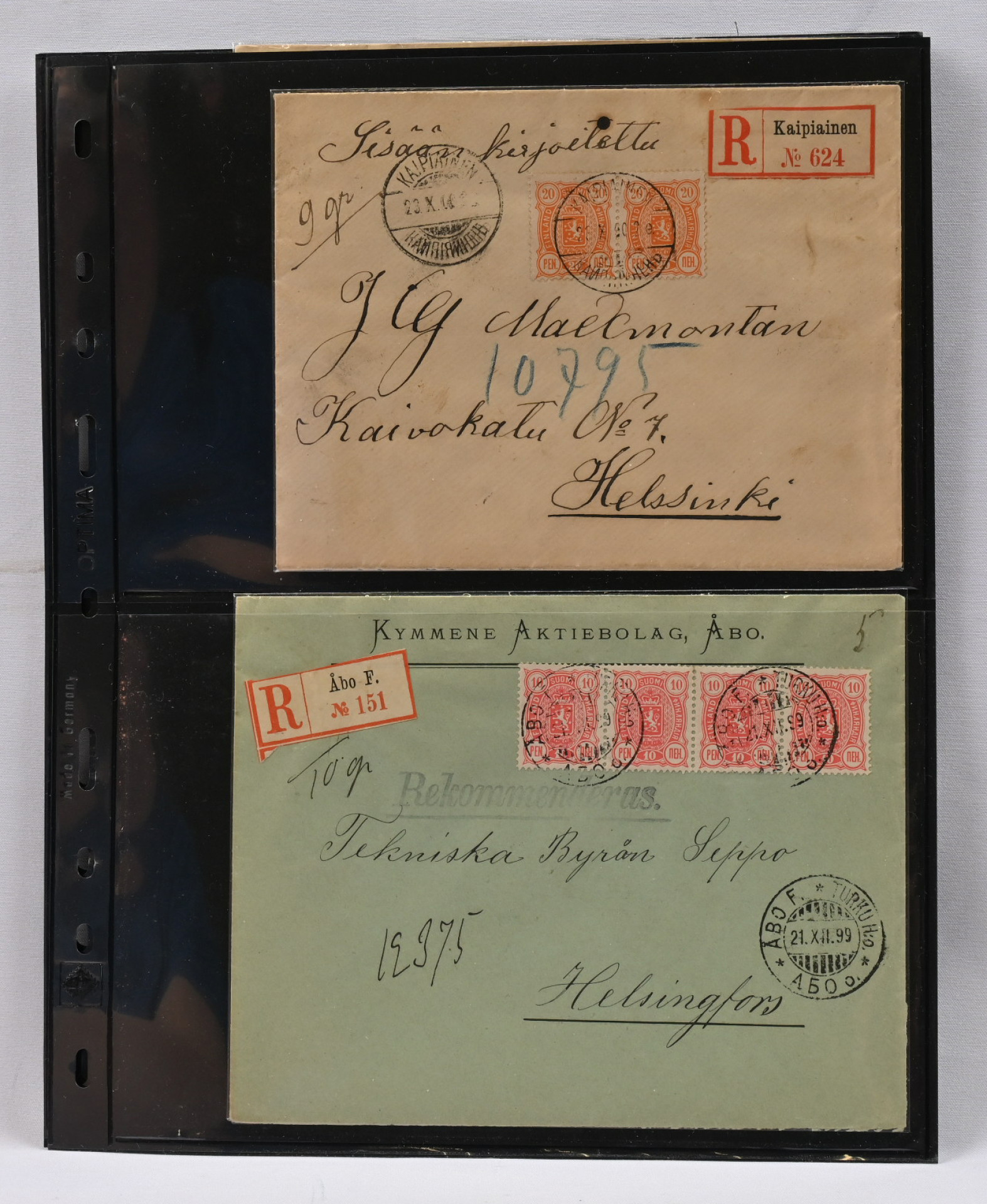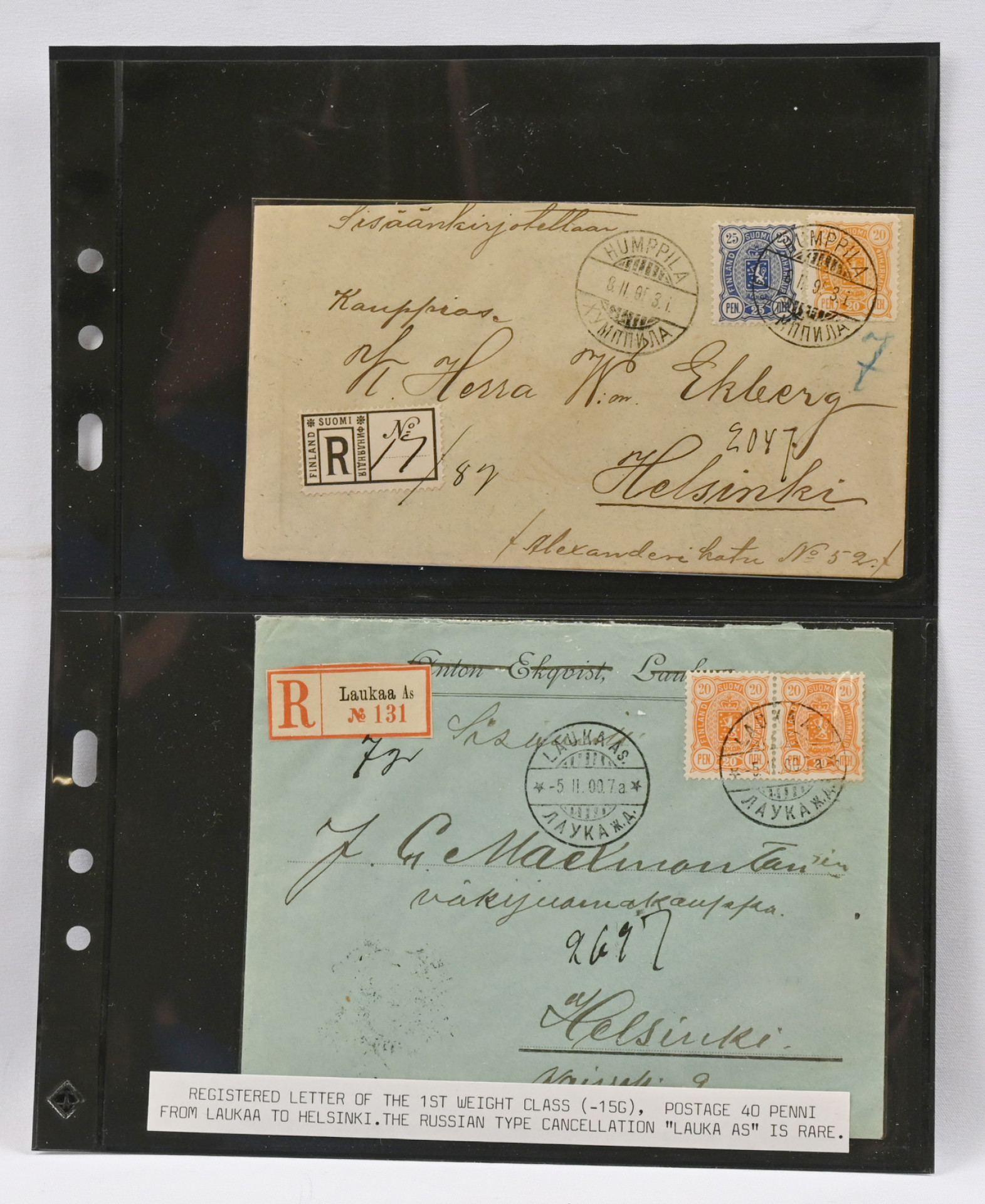 Kuusi kaunista kirjattua lähetystä. Eri merkkiyhdistelmiä, harvinainen Lauka As -venäläisleima ym