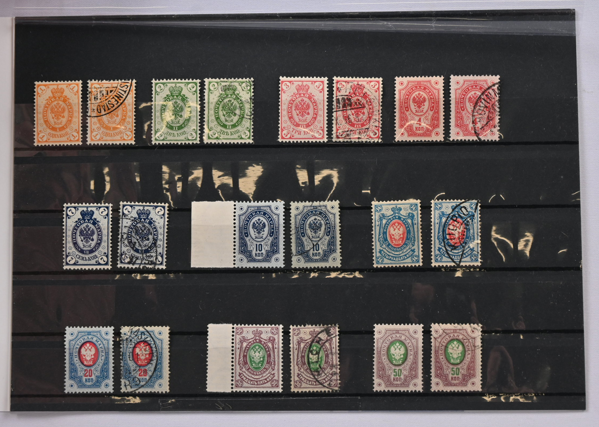 1 kopeekka - 50 kopeekkaa leimatut ja käyttämättömät * (7, 10, 35 ja 50 kopeekkaa postituoreet **).