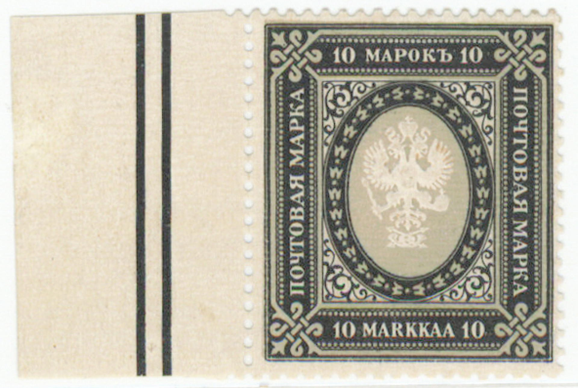1901 10 markkaa harvinainen postituore ** arkin reunalla (L. 54)