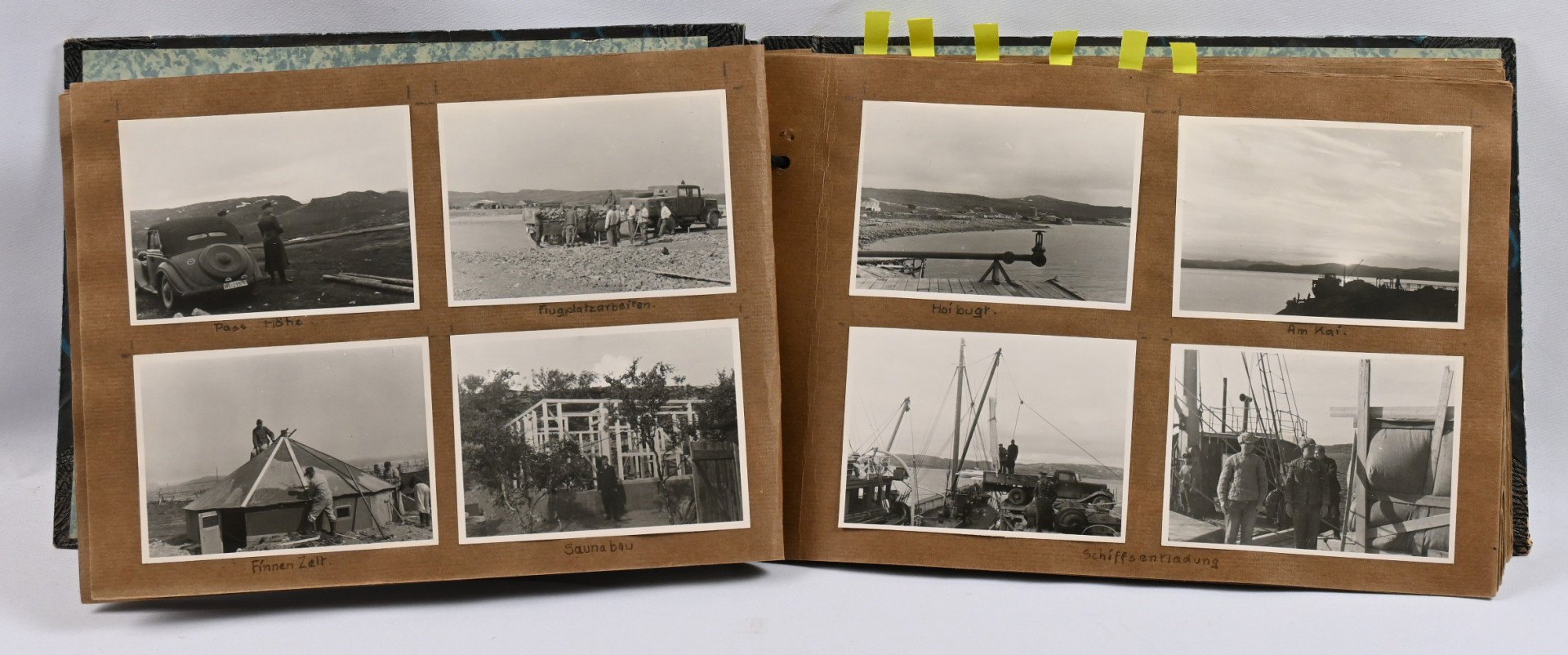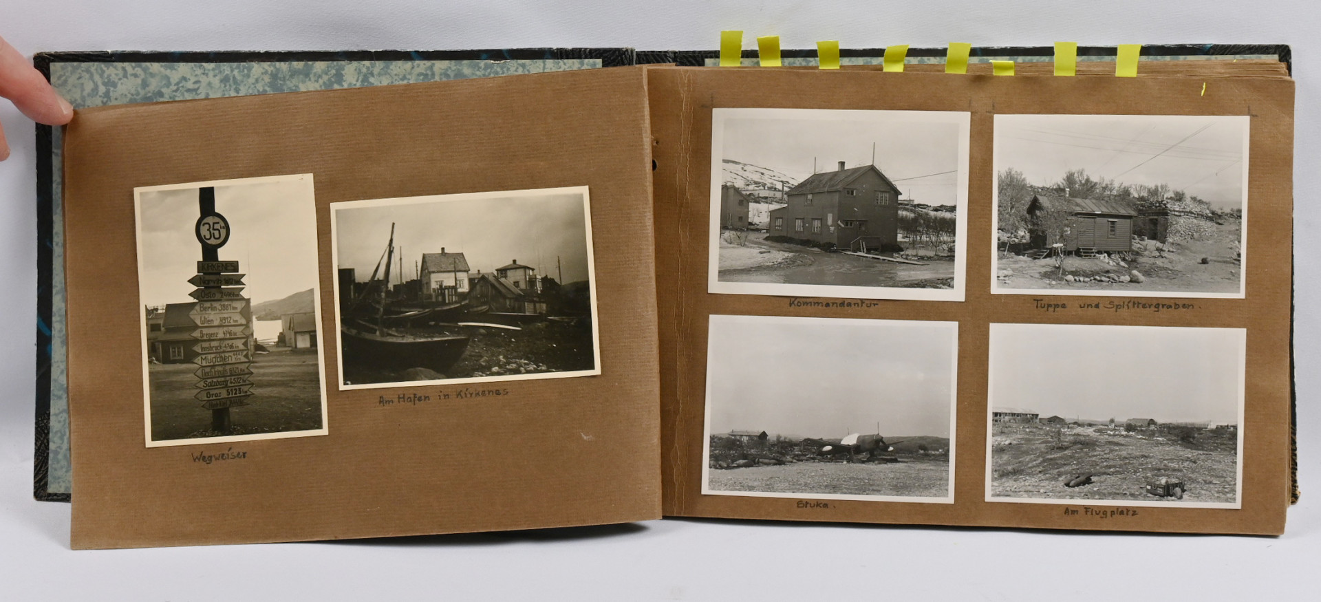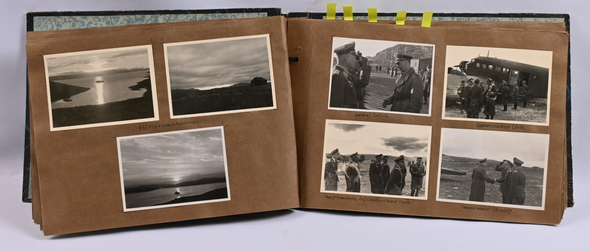 Saksalaisen Norjassa ”sisarena” toimineen (”als Schwester in Nordnorwegen”) naisen kansio valokuvia pohjois-Norjasta 1942-43. Yli 90 valokuvaa: maisemia, rakennuksia / rakentamista, sotilaiden muotokuvia, tapahtumakuvia jne. Monia upseerien kuvia, henkilöt osin nimetty. Mielenkiintoinen!.