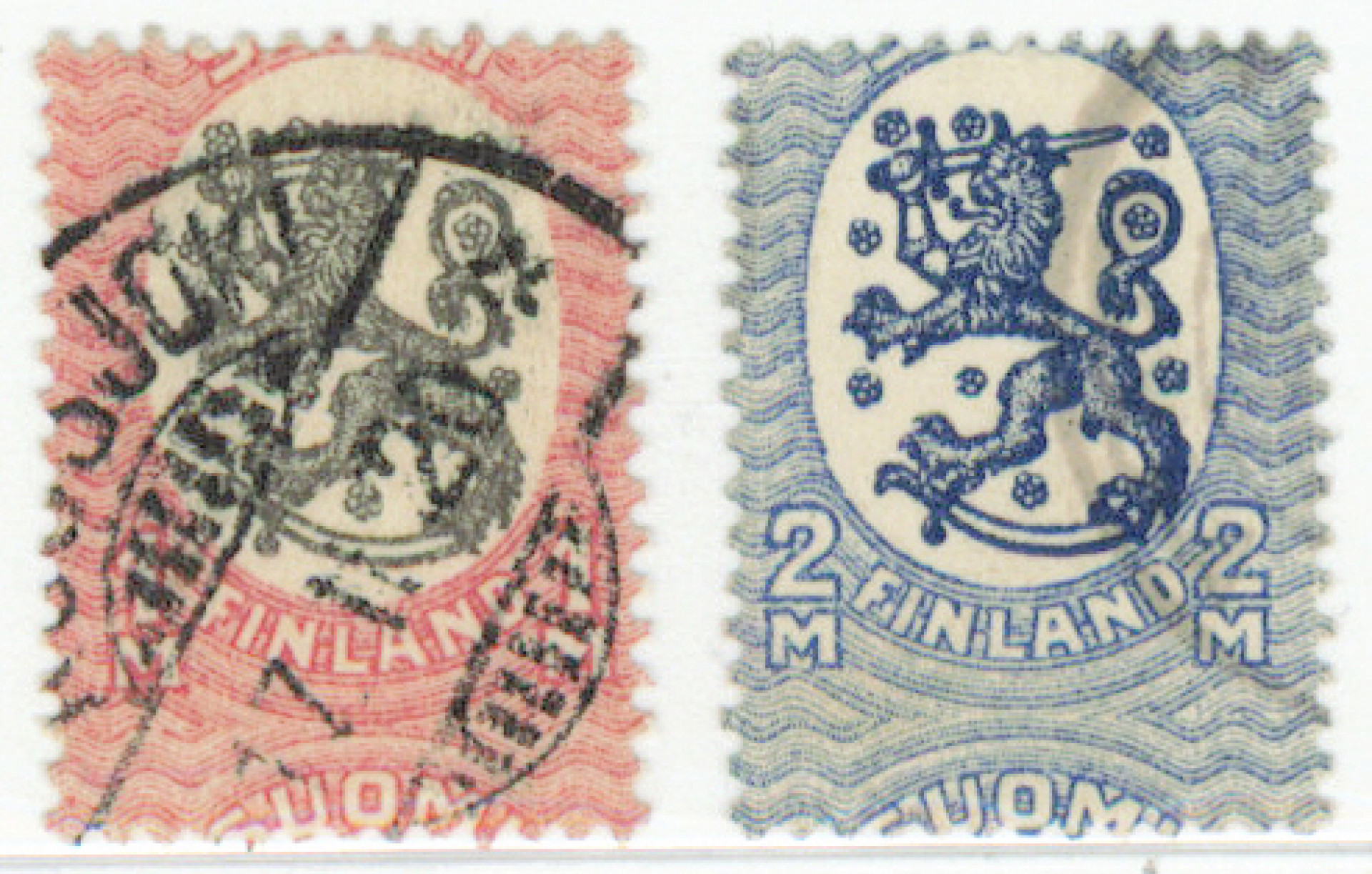 1917 kaksi hieno SIIRTYMÄÄ 1 markka ja 2 markkaa, leimatut
