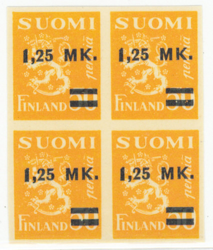 1.25 markkaa / 50 penniä hammastamaton nelilö, käyttämätön (*) ilman liimaa