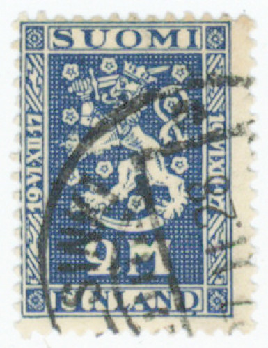 1927 Itsenäisyys 2 markkaa W2. Harvinainen leimattu, Helsinki 1928. (L. 126W2)
