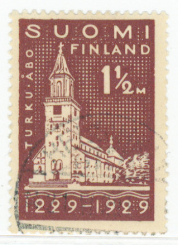 1929 Turku 1½ markkaa W4 erittäin harvinainen leimattu. Joku lyhyt hammas (L. 140 W4)