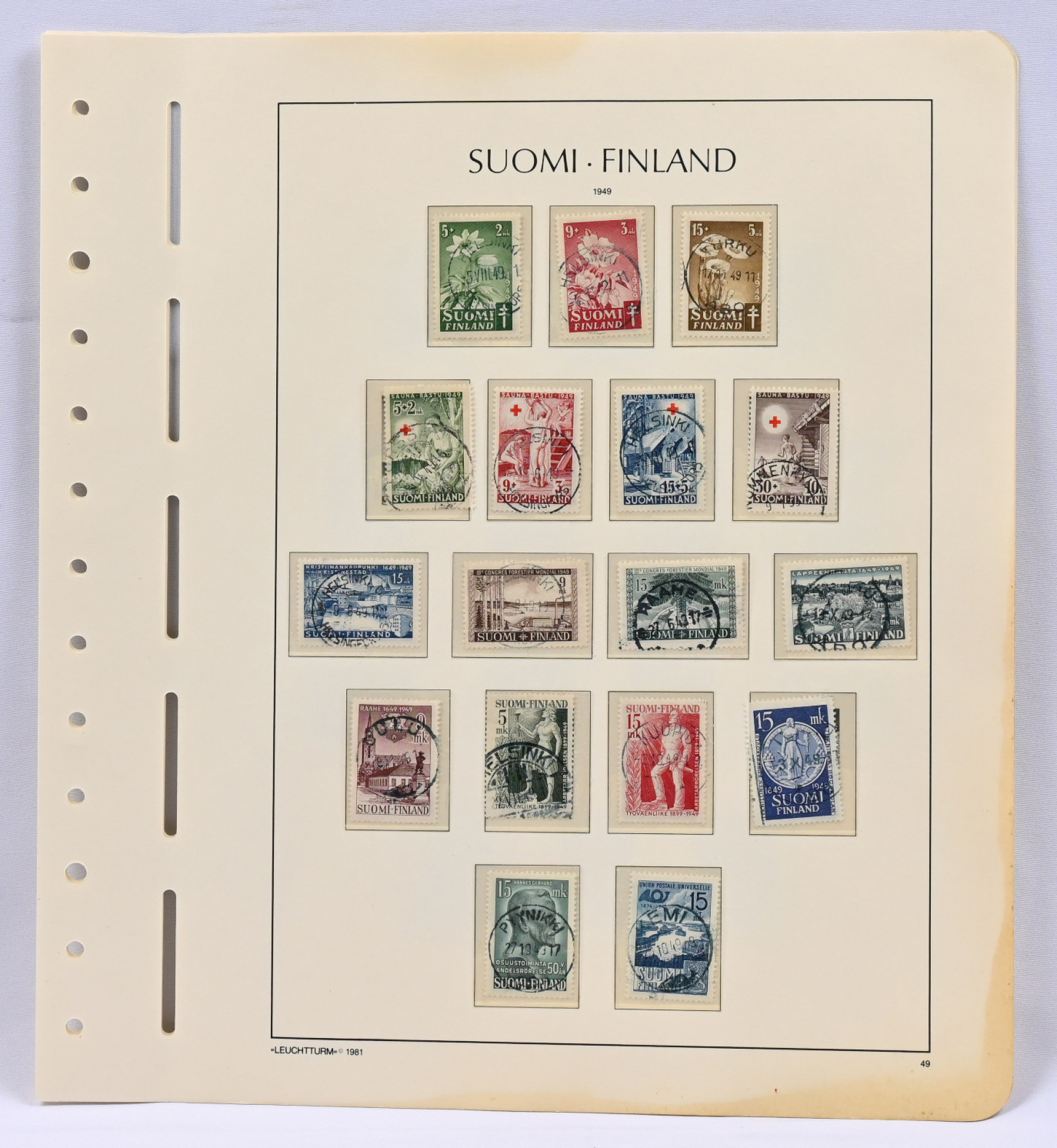 1947 - 49 loistoja / lähes loistoja joku kaunis leimainen myös Punaista Ristiä hieno materiaali kolmella sivulla