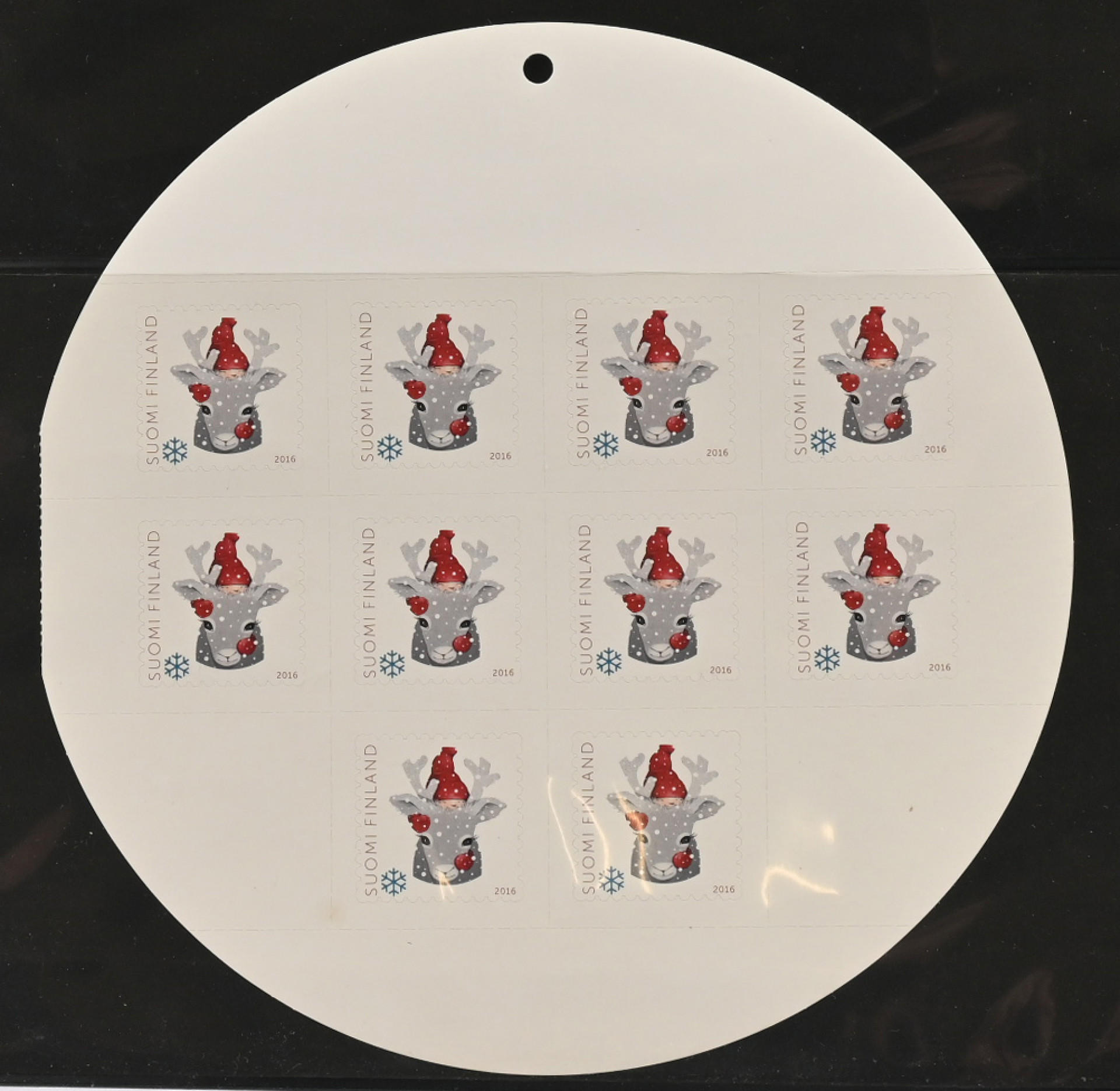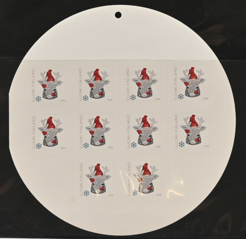 2016 Joulupostimerkki (L. 2454) 10 merkin arkki, josta PUUTTUU osa painatukseta! Näyttävä erikoisuus!