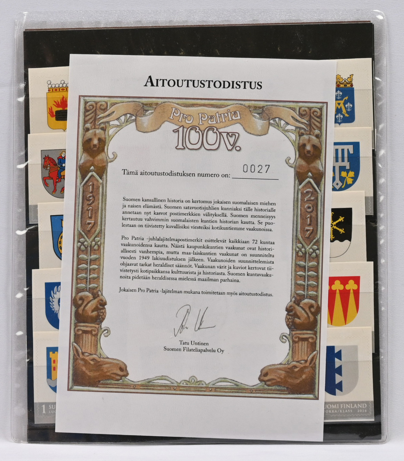 2017 Pro Patria -juhlalajitelma, 72 erilaista vaakuna-aiheista postituoretta ** omakuvamerkkiä