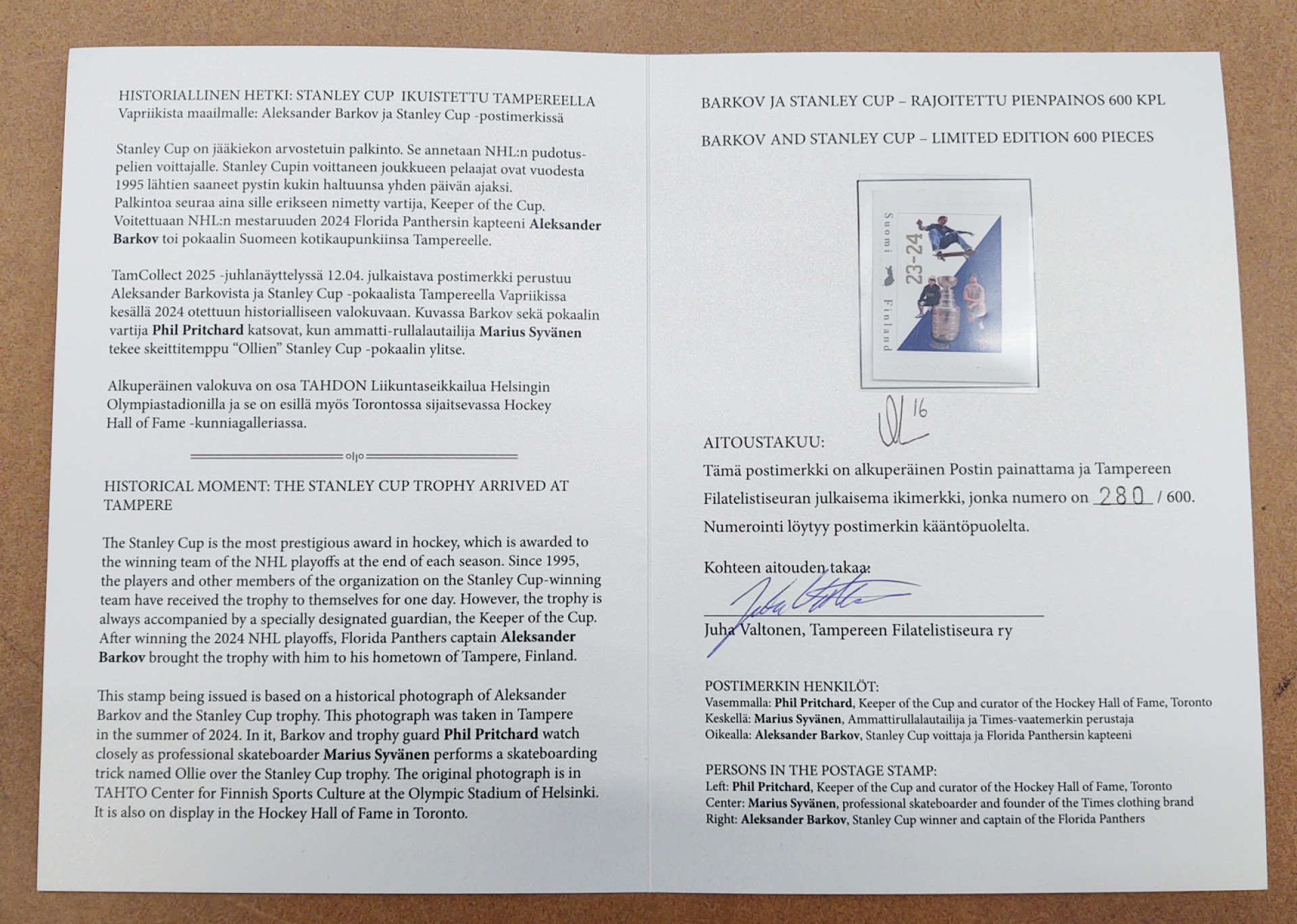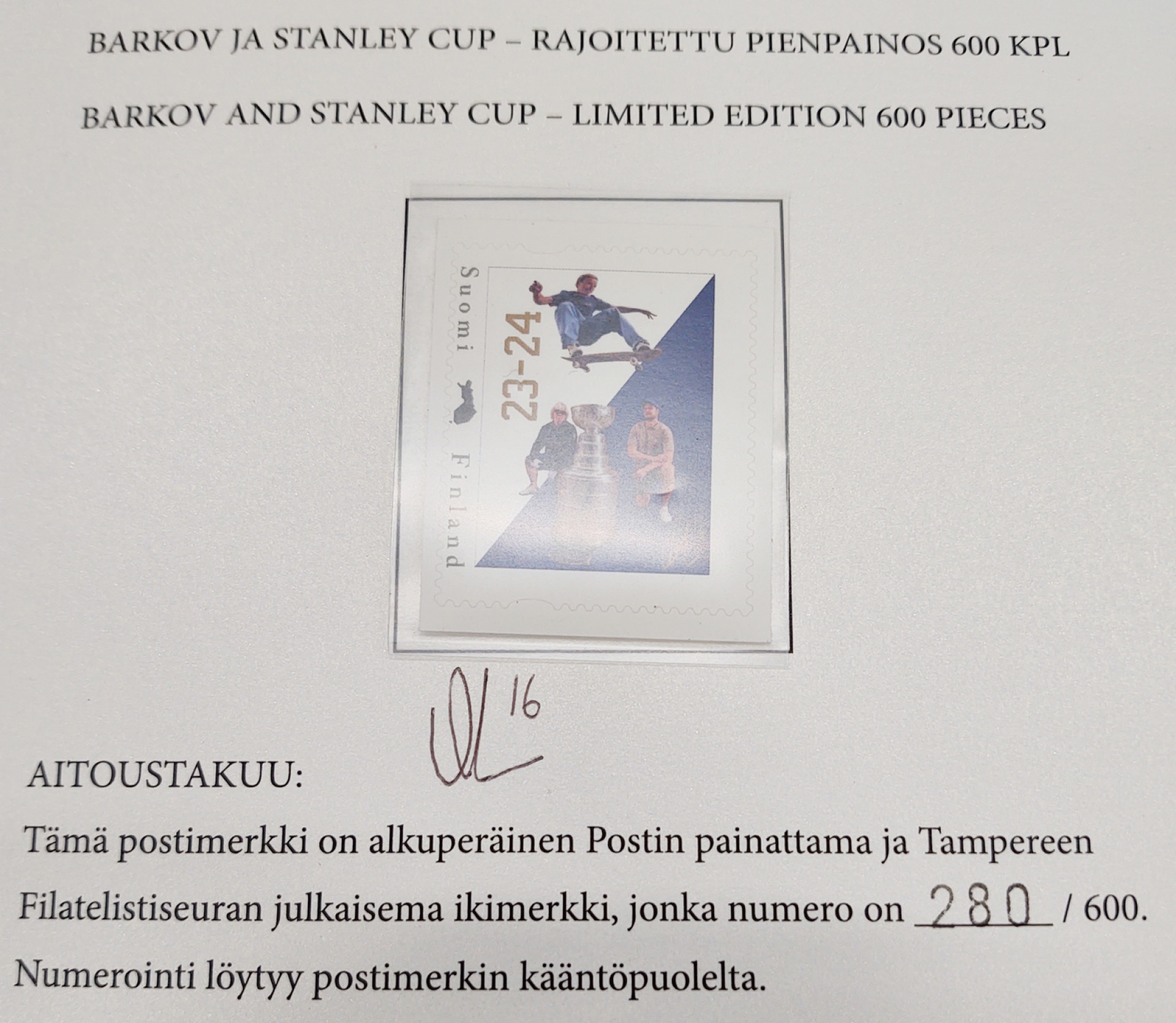 2025 Aleksaner Barkov omakuvamerkki -kansiossa, jossa myös hänen nimikirjoituksensa!