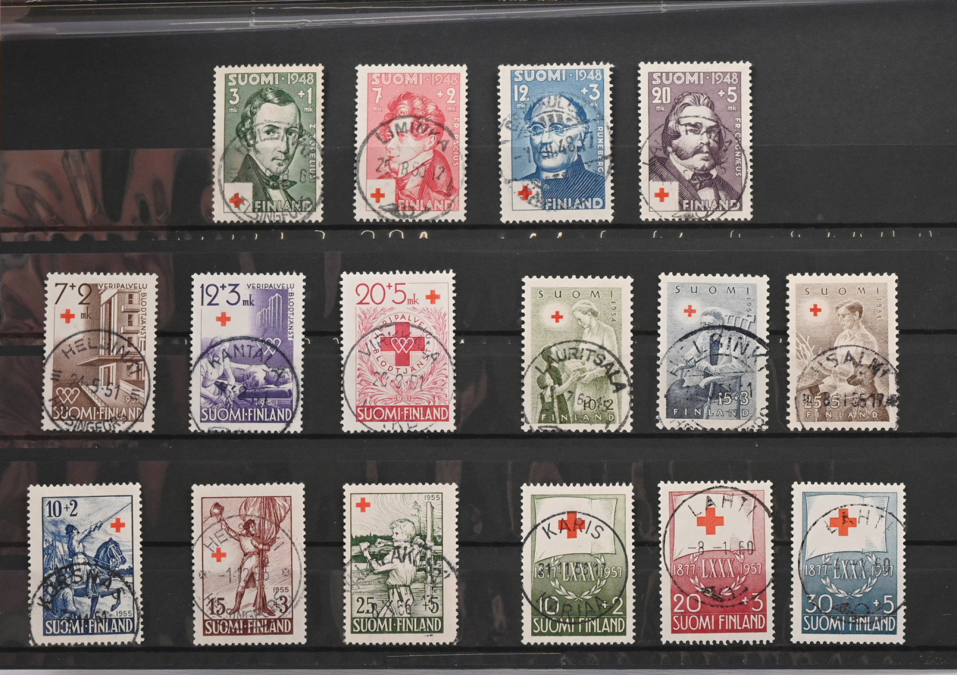 1948 - 1957 viisi sarjaa loisto/ lähes loisto -leimoin