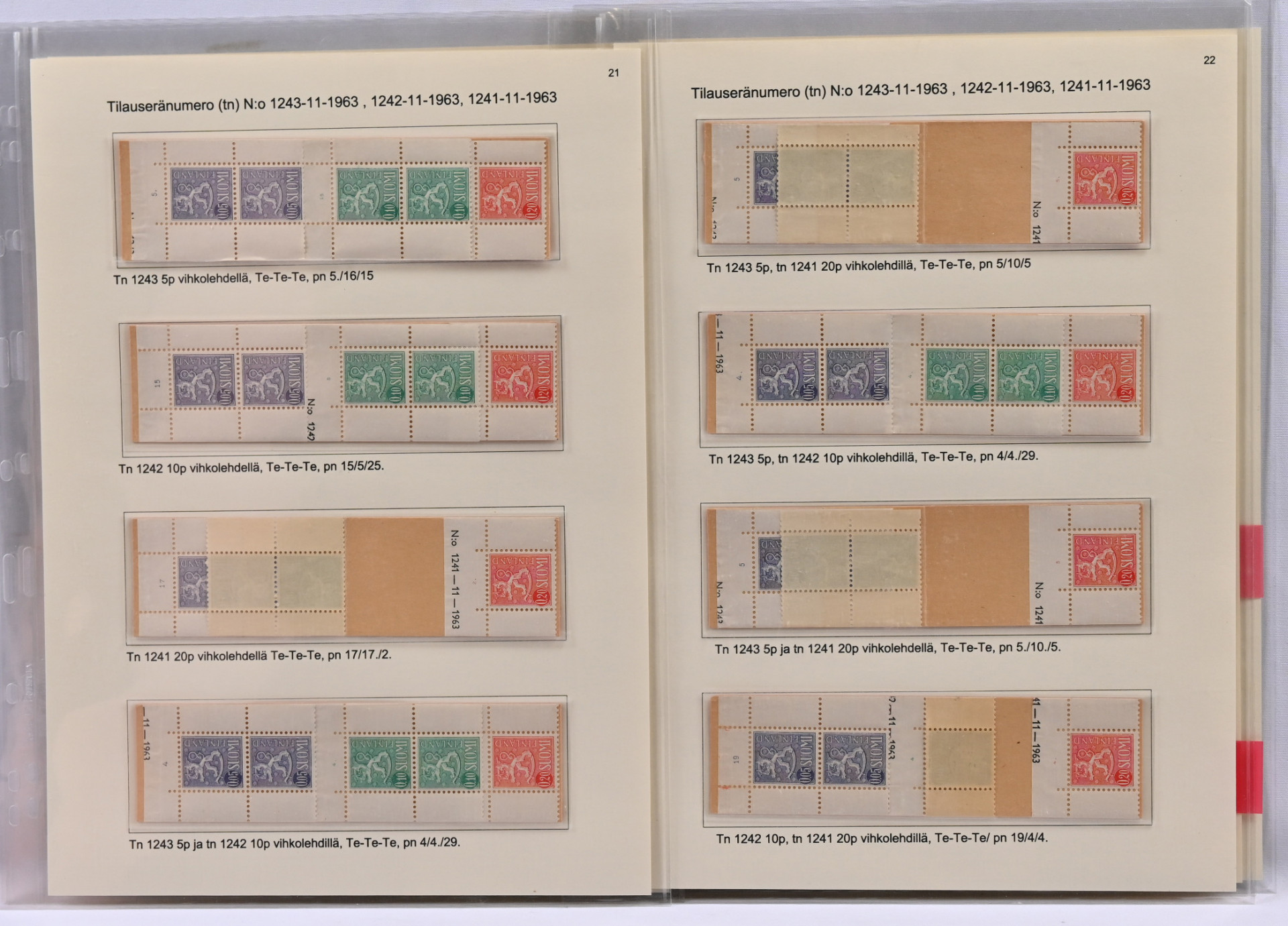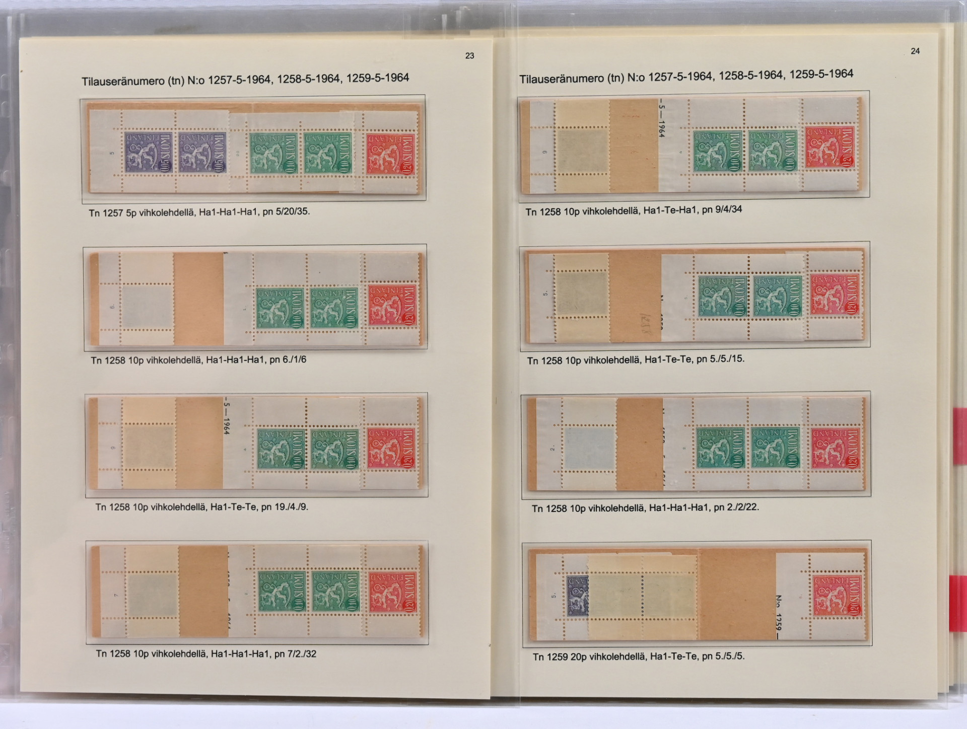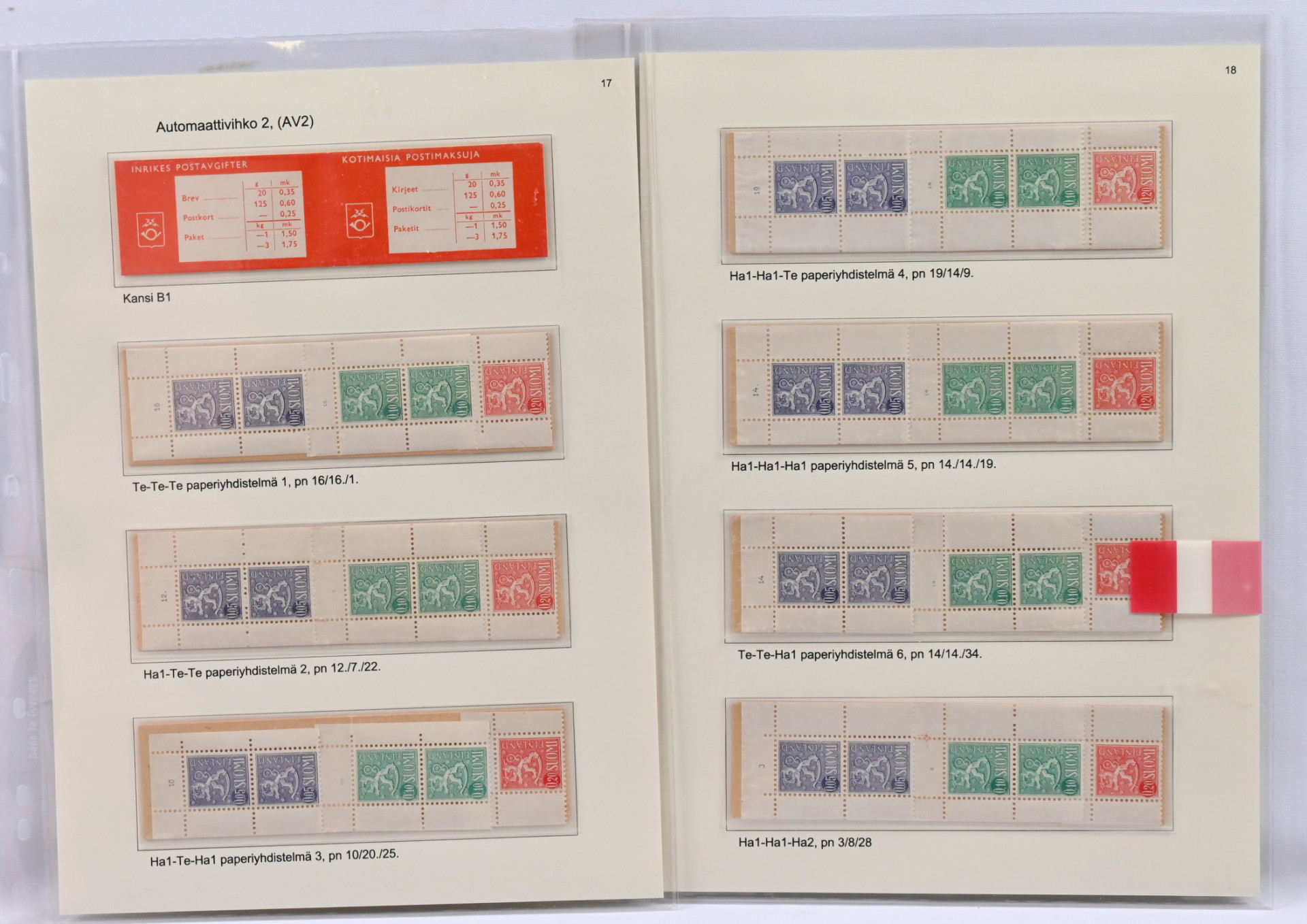 Suomen paras punakantisten automaattivihkojen näyttelykokoelman osa 2 - AV2 poikkeuksellisen hieno materiaali 32 näyttelykokoelmasivulla! Mukana monia hyviä kuten kansi B1 Te-Te-Ha1 paperiyhdistelmä 6, pn 14/14./34 ja Ov 0,05mk, 0,10mk ja 0,20mk vihkolehdillä, Te-Te-Te, pn 1/1/1. Kaikki sivut kuvattu. Kokoelma on palkittu suurella kullatulla hopealla. Vastaavaa tuskin koskaan tarjolla!