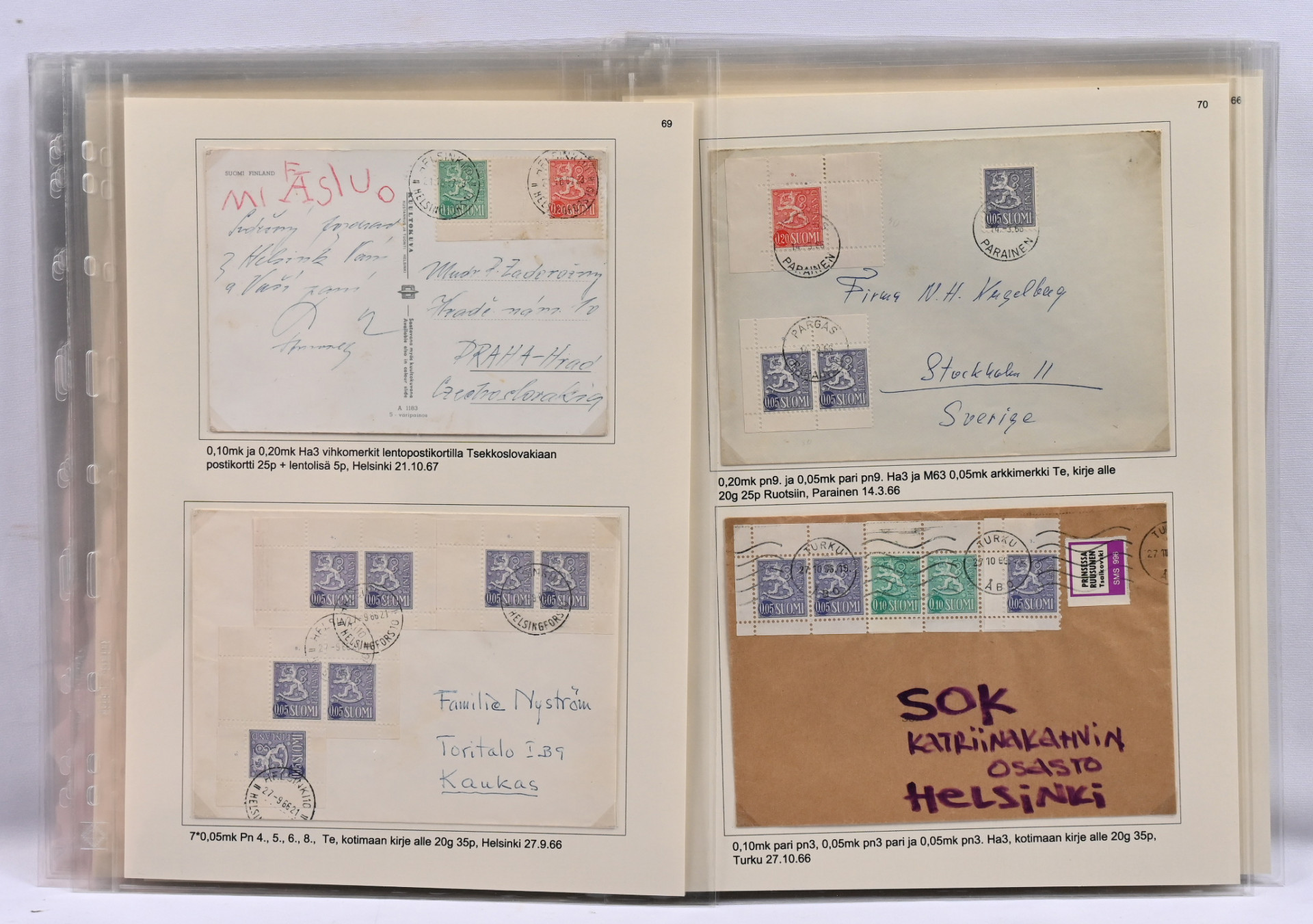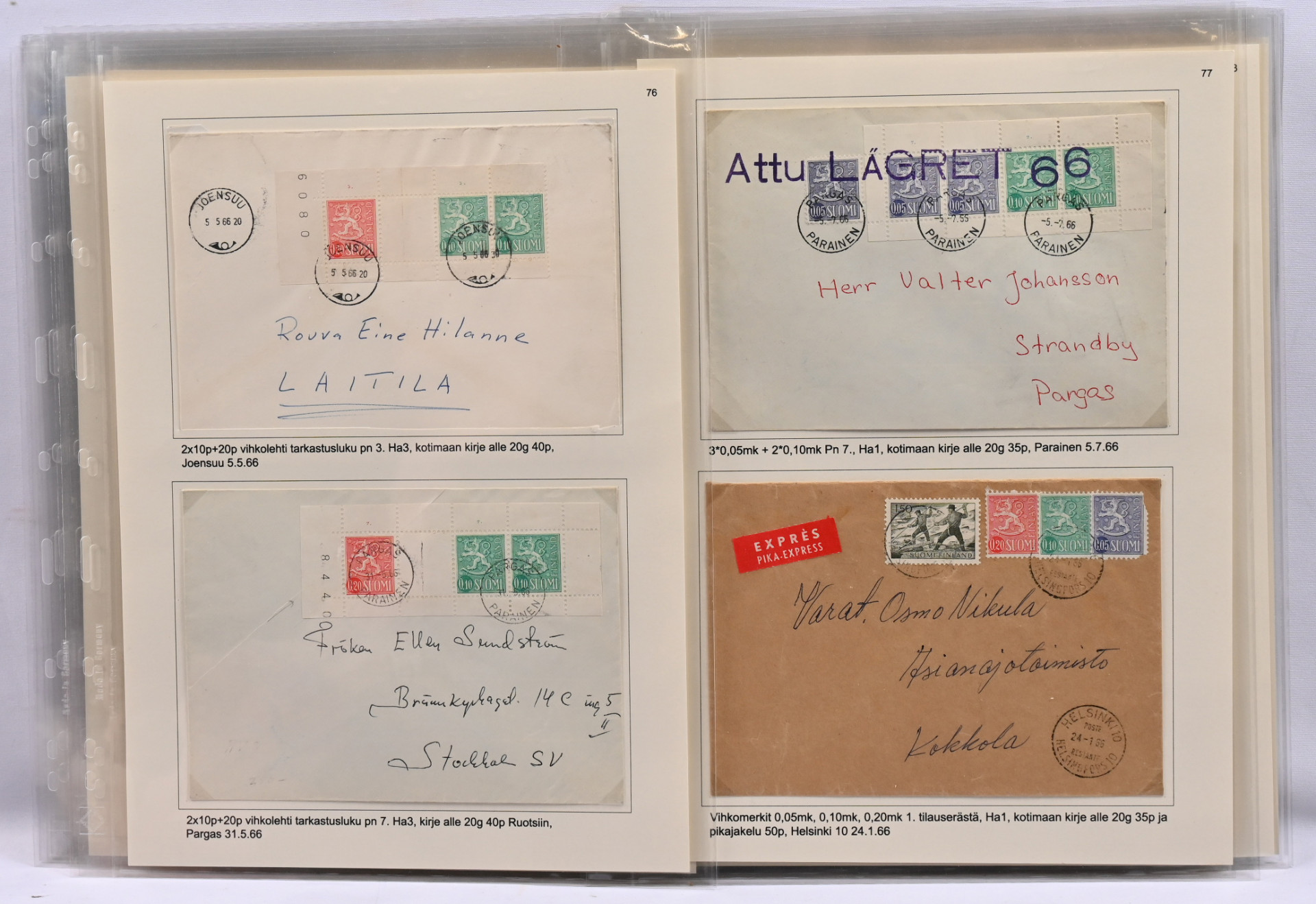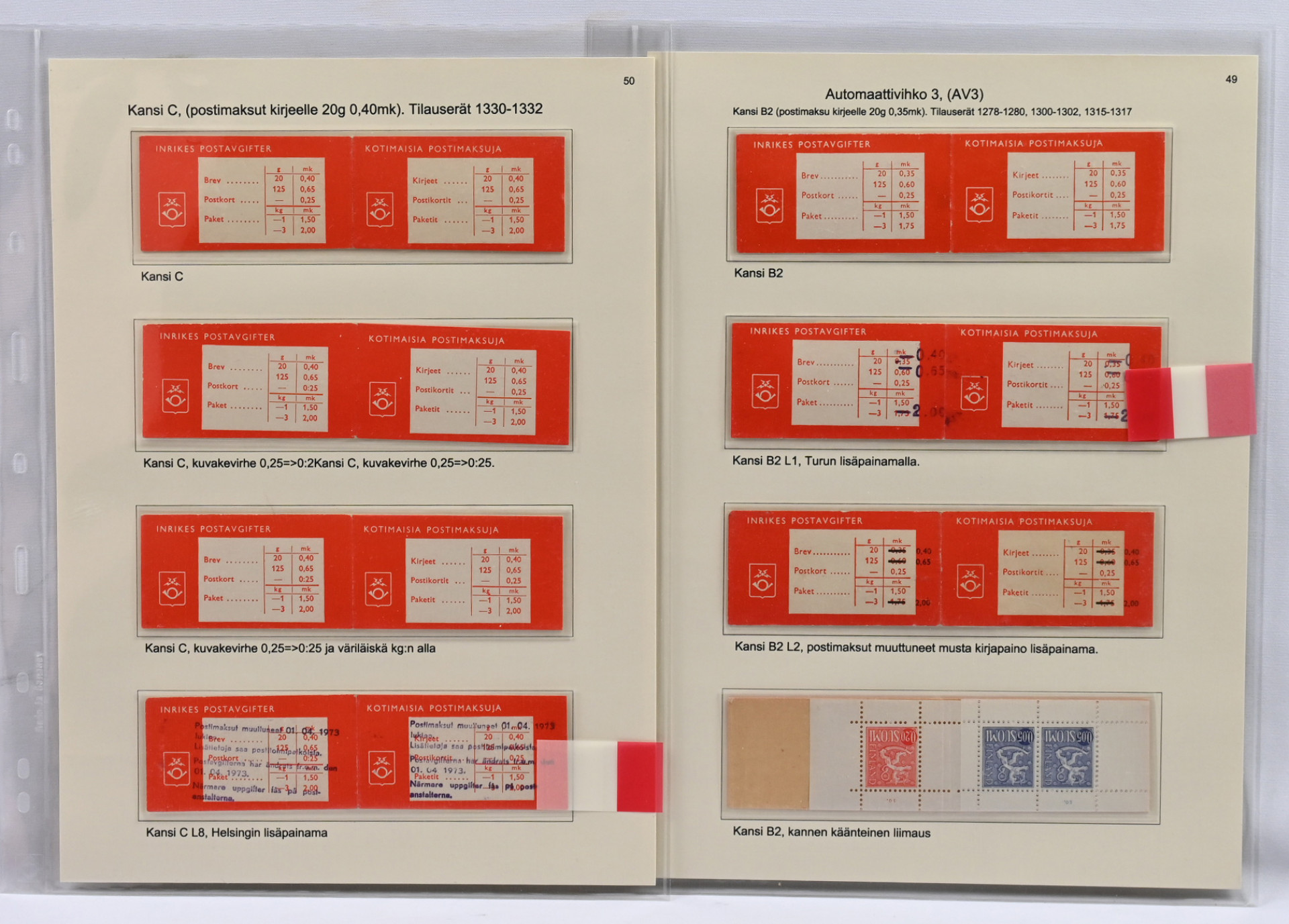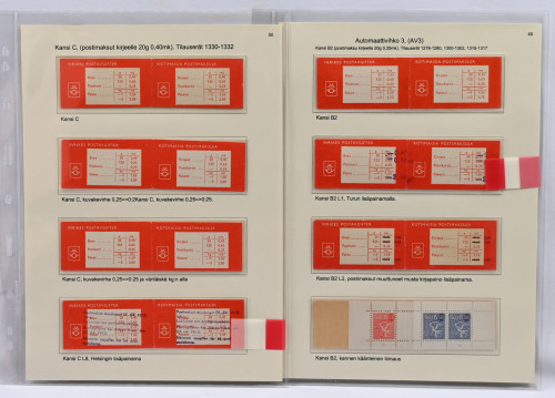 Suomen paras punakantisten automaattivihkojen näyttelykokoelman osa 3 - AV3 todella hieno ja harvinainen materiaali 32 näyttelykokoelmasivulla! Mukana monia hyviä kuten Kansi B2 L1, Turun lisäpainamalla ja kansi C L8, Helsingin lisäpainama. Kaikki sivut kuvattu. Kokoelma on palkittu suurella kullatulla hopealla. Vastaavaa tuskin koskaan tarjolla!