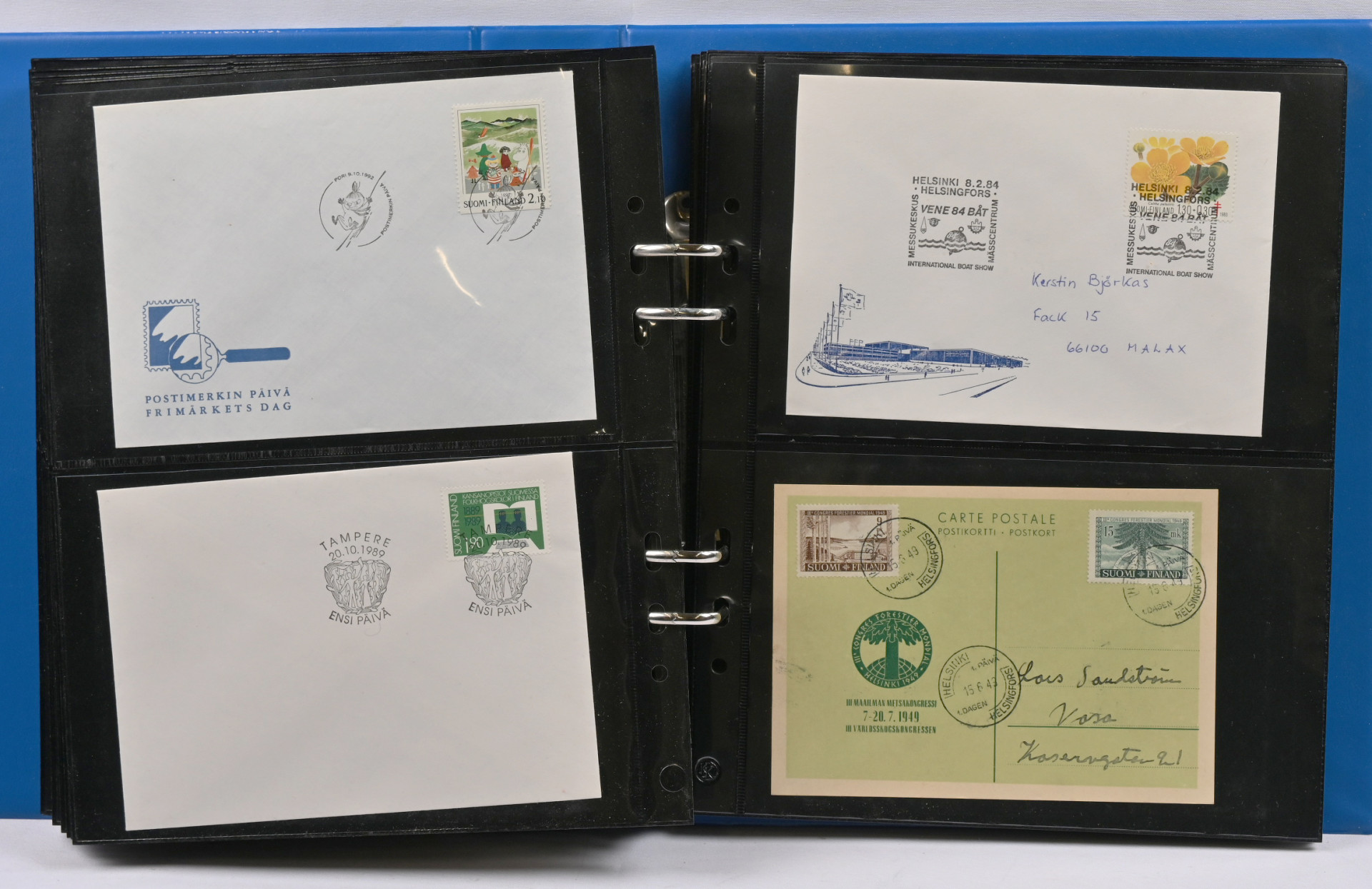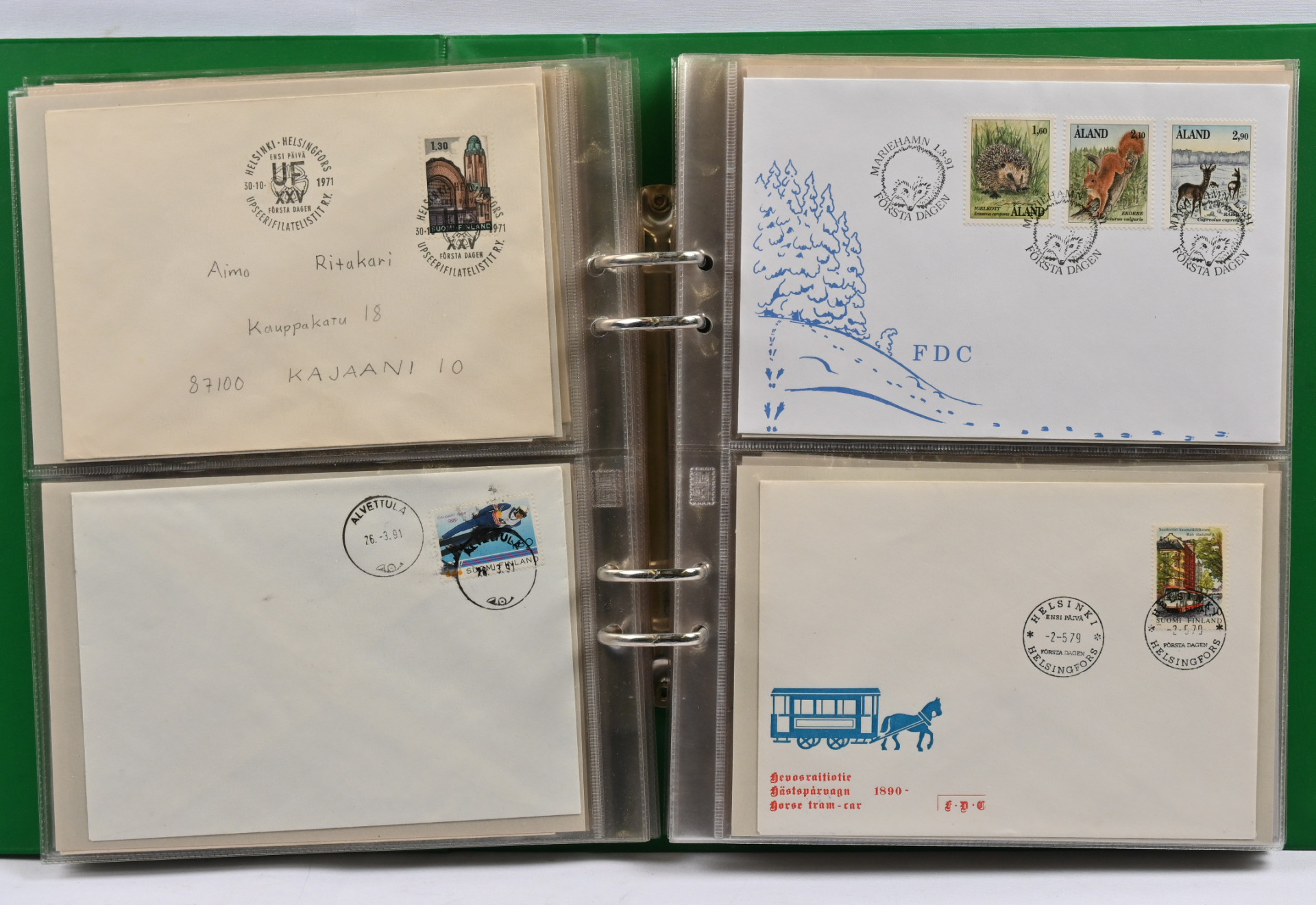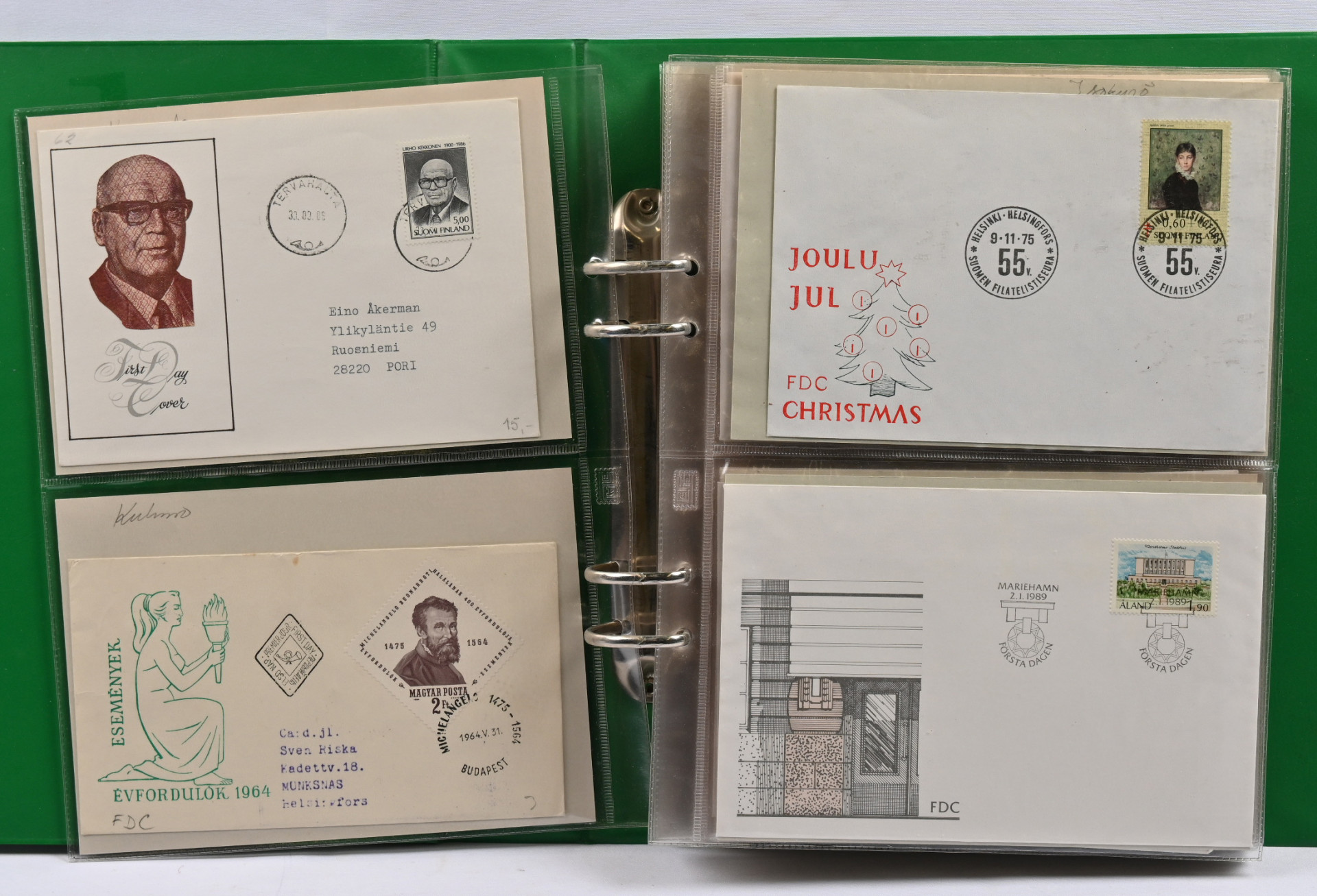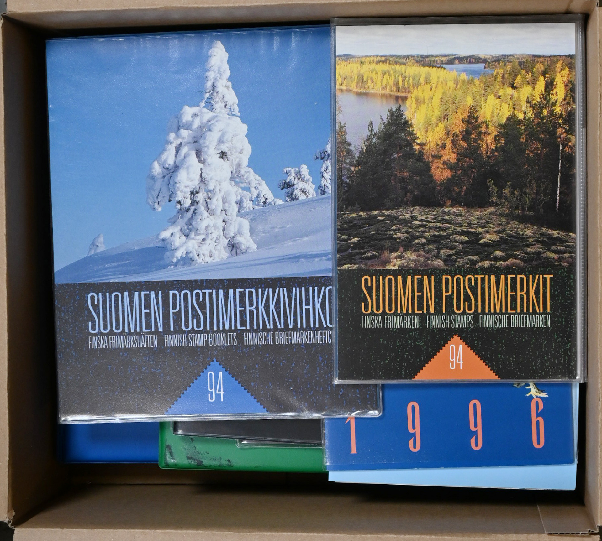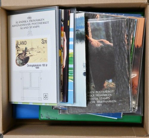 1986 - 2003 Suomen ja Ahvenanmaan vuosilajitelmia erä 26 erilaista. Lisäksi kaksi kansiota FDC:tä ym materiaalia 1947 alkaen