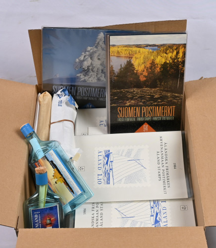 1994 Suomen merkki- ja vihkolajitelmat (28 ikimerkkiä), iso nippu Ahvenanmaan vuosilajitelmia 1984 - 1986 sekä joitakin muita lajitelmia. Lisäksi yli 100 kappaletta maksikortteja, paljon samoja
