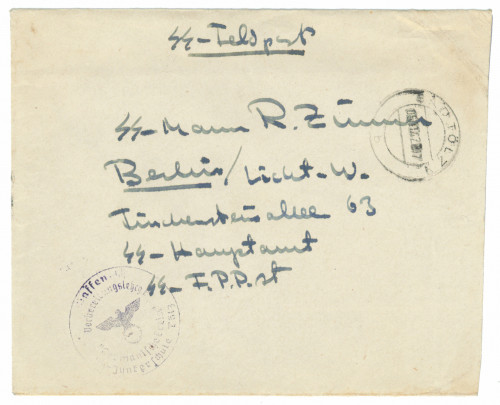 SS -vapaaehtoispostia: Saksan sisällä kulkenut lähetys, lähettäjä upseerikoulusta SS -sensuuriin Berliiniin