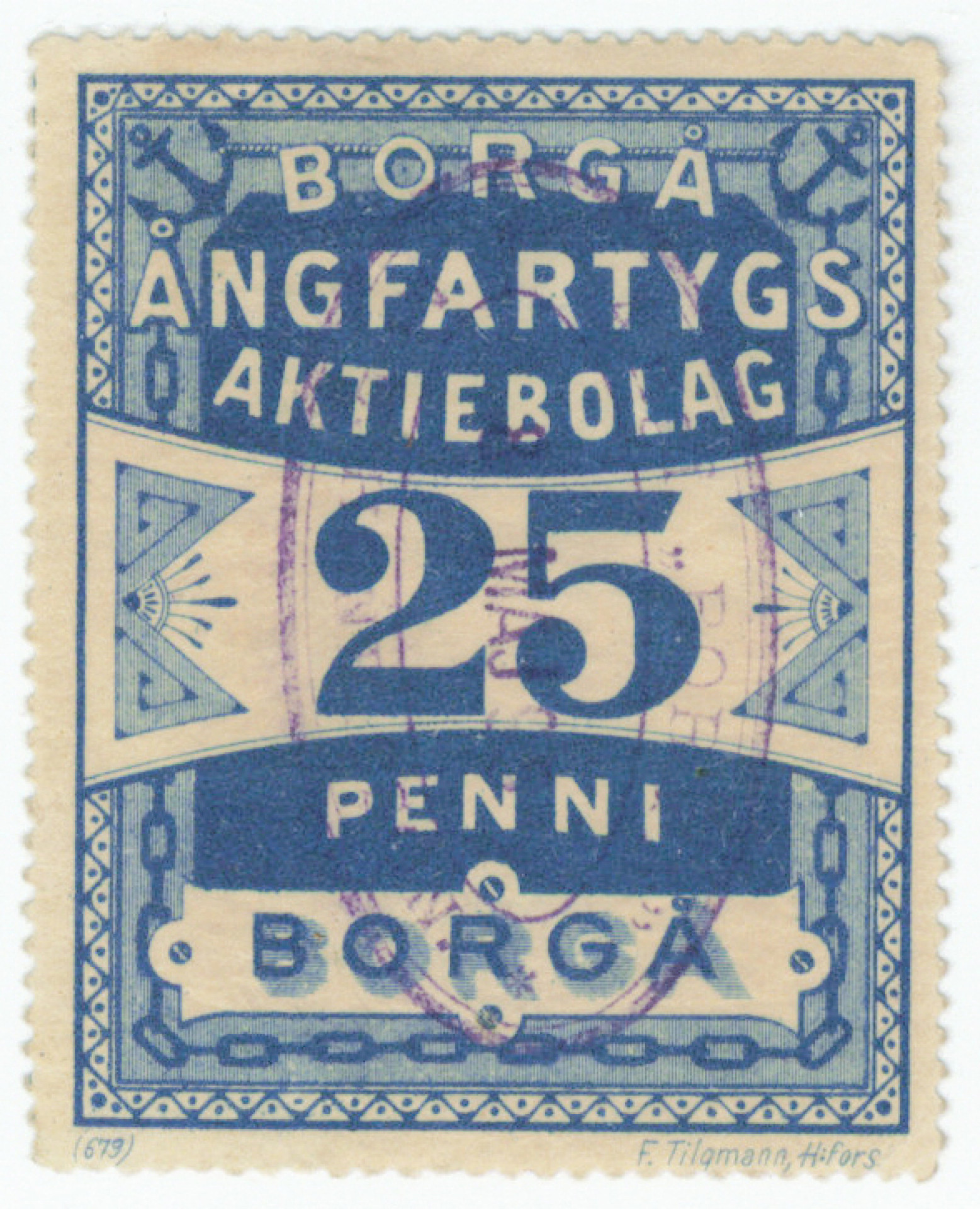 Borgå Angfartygsaktibolaget 1901 25 penniä leimattu mutta vikaa. Ex Fabergé (L. 14)