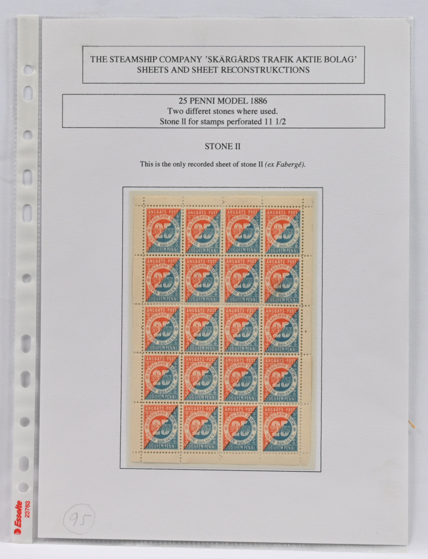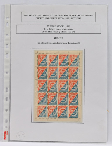 Skärgårds Trafik Aktiebolaget 1886 25 penniä harvinainen KOKONAINEN ARKKI - ilmeisesti ainoa tunnettu tästä painoksesta! Ex Fabergé, Ex Sundman (L. 80E)