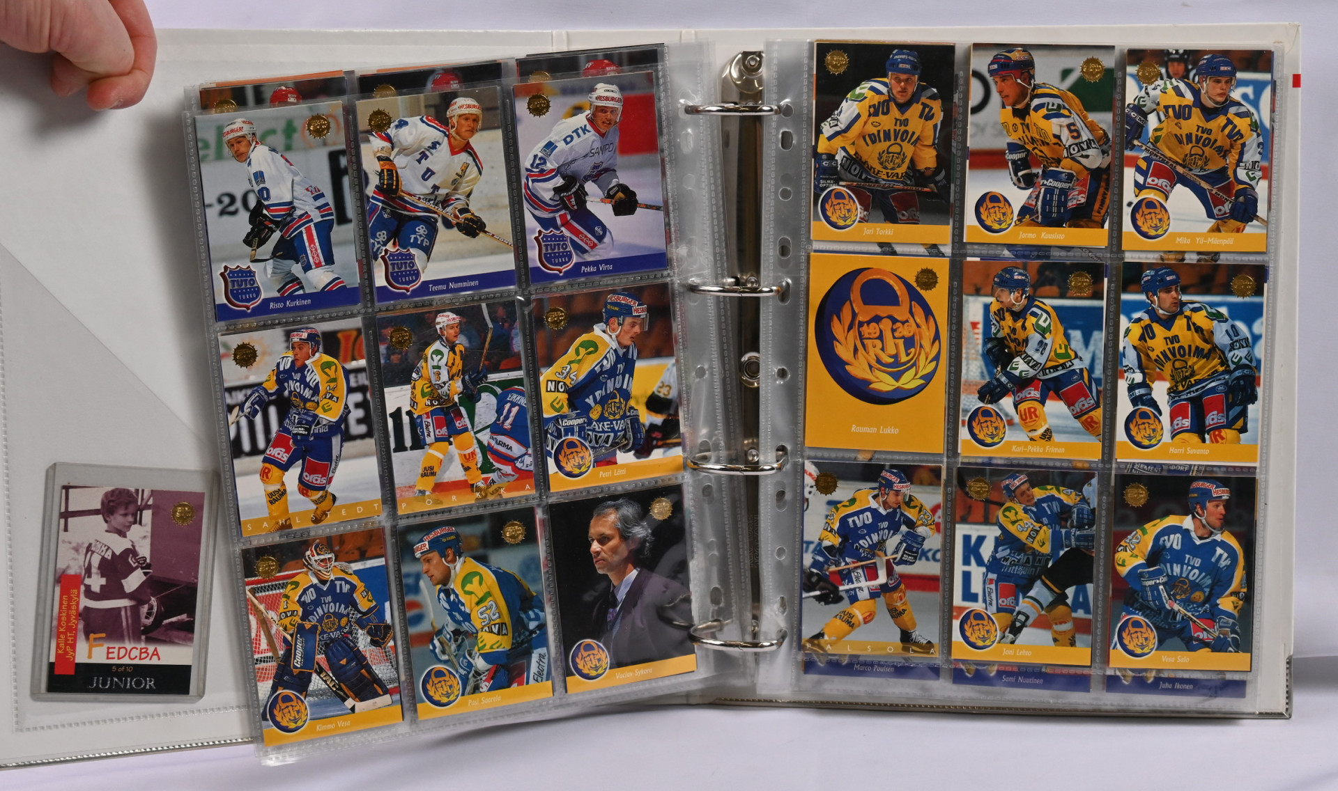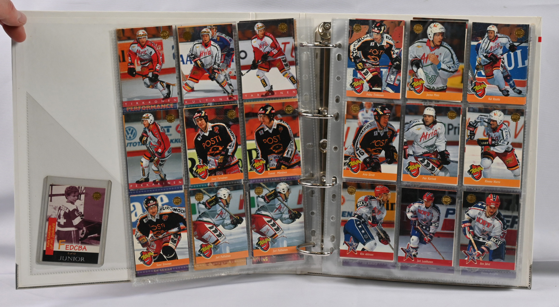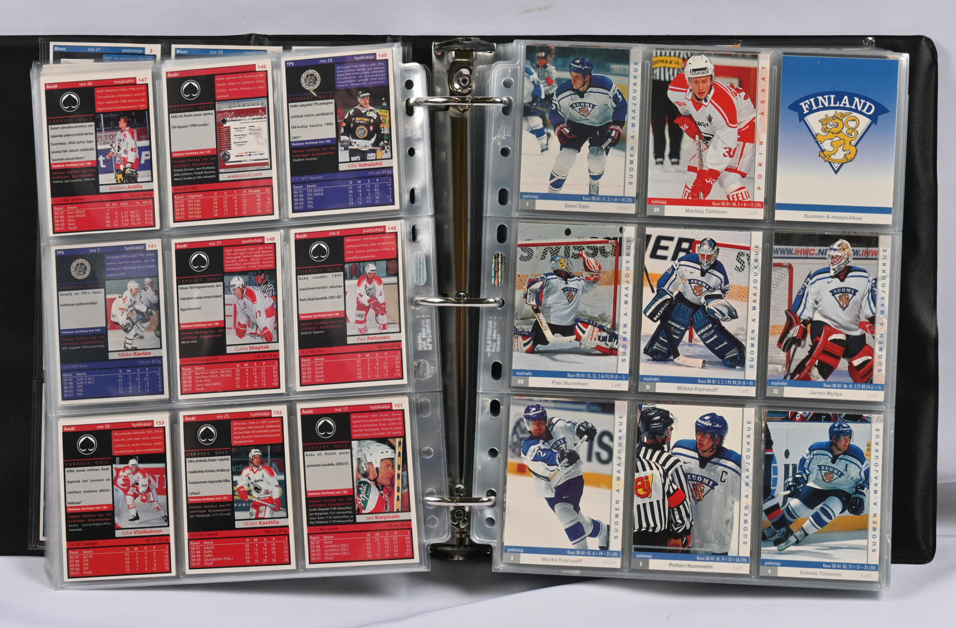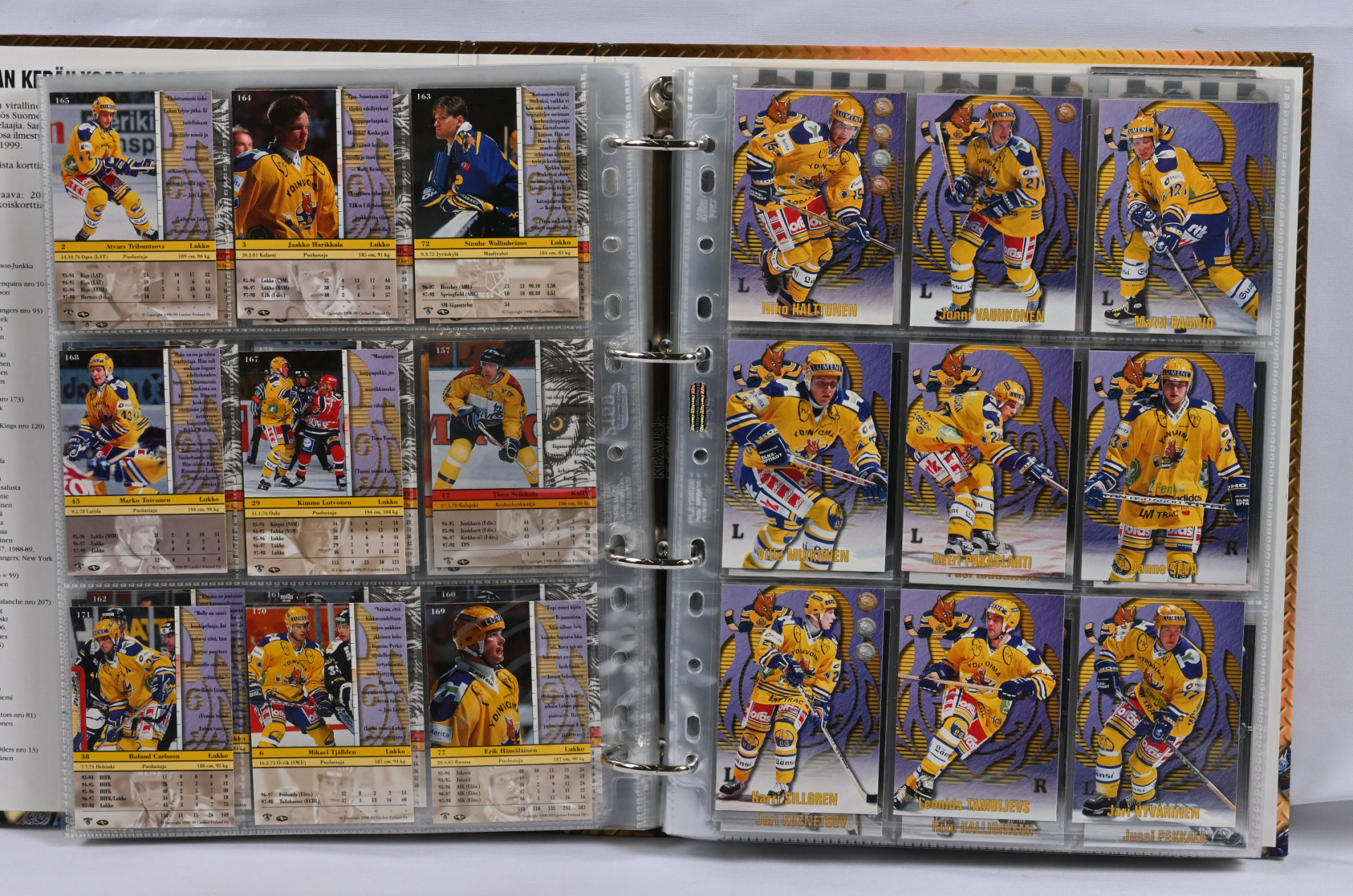 Sm-liigan kortteja iso erä 17 erikokoisessa albumissa. Pääosin 1990-luvun materiaalia mutta myös hiukan 2000-lukua. Mukana mm. 1994-95 Sisu Saku Koivu Signature (vikaa)