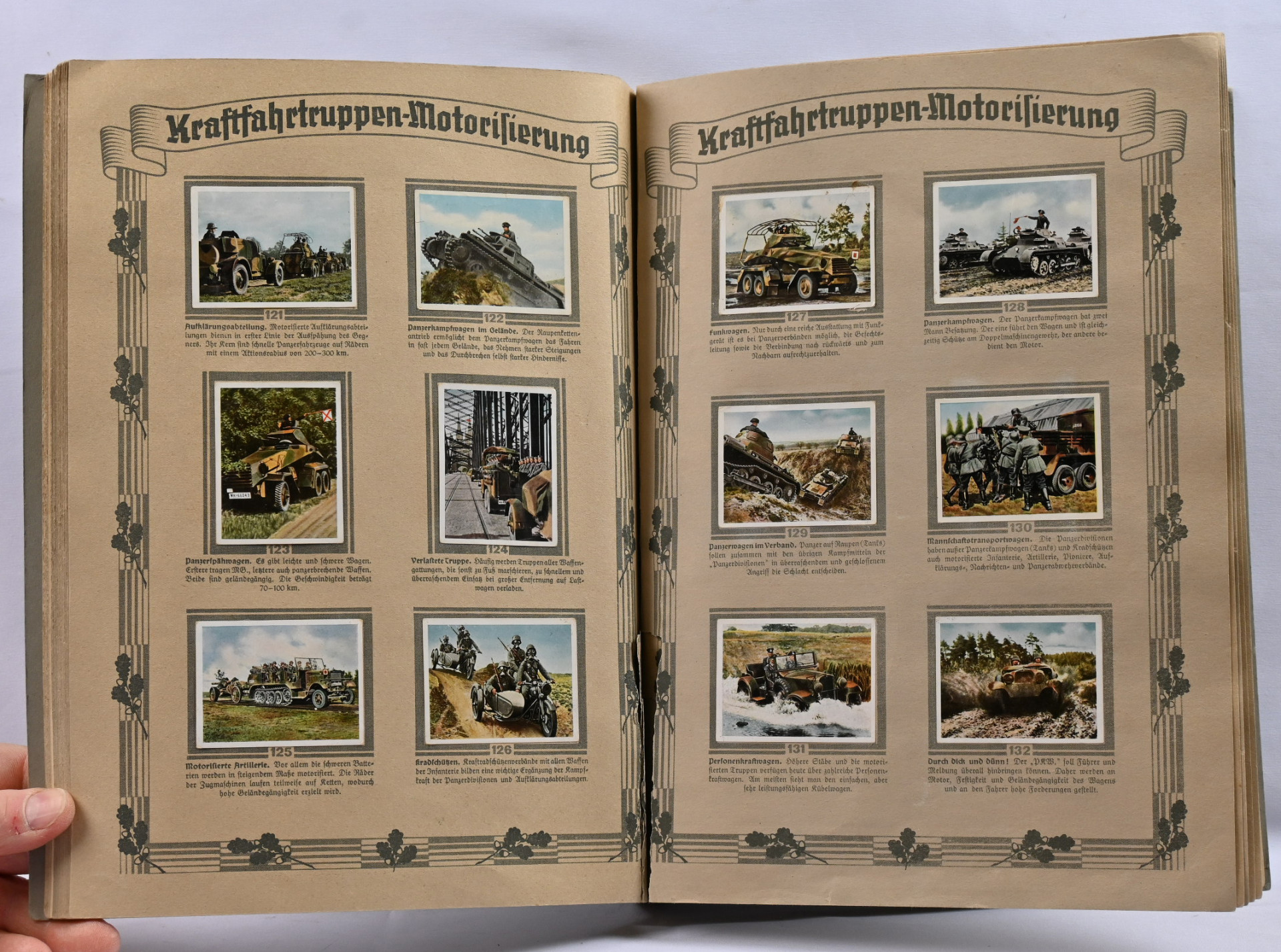 Keräilykuva-albumi ”Die Deutsche Wehrmacht”. Hienokuntoinen albumi Saksan asevoimista Wehrmachtista 30-luvulta. Kirja ja sen sisältämät 270 kuvaa ovat virheettömässä kunnossa. Dresden-A5 1936. Ns. Juno kuva-albumi.