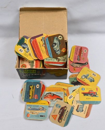 Pauligin kahvipakettien autoaiheisia keräilykortteja noin 200 kappaletta.