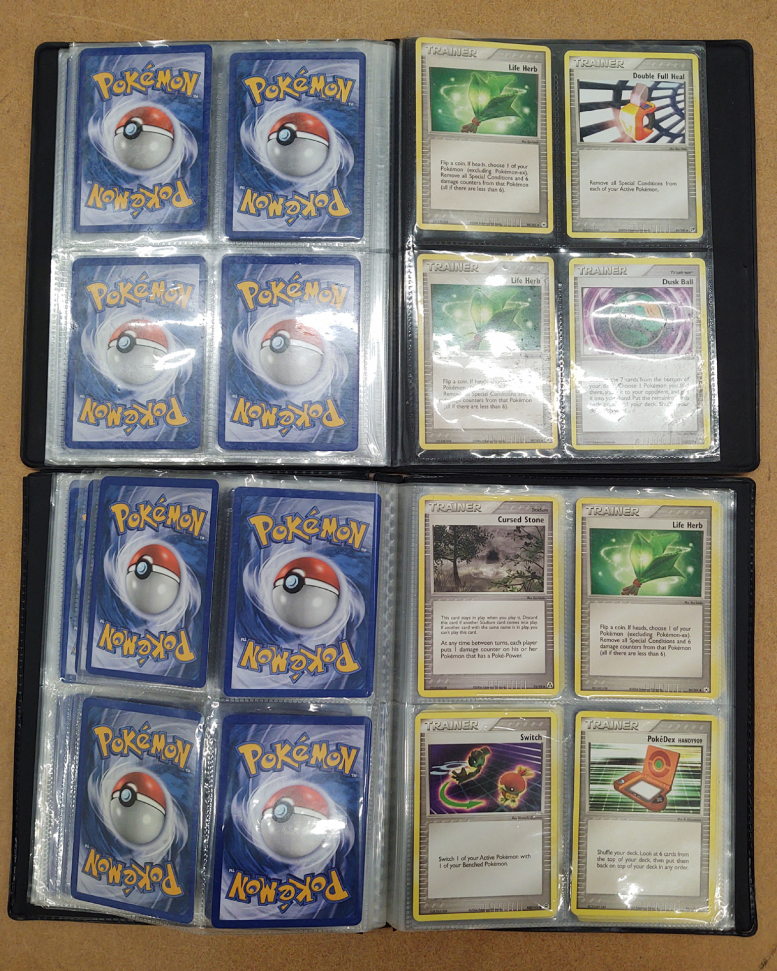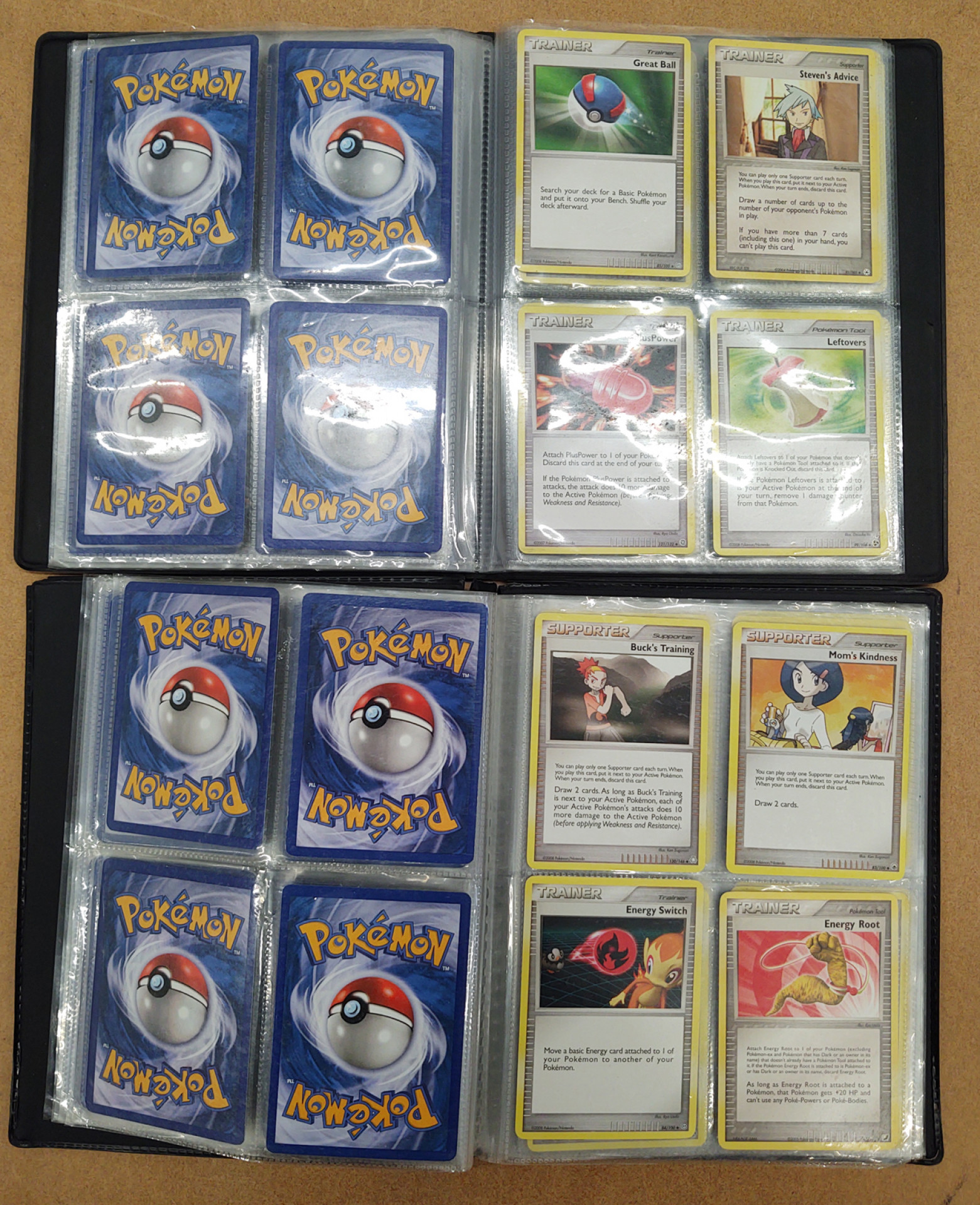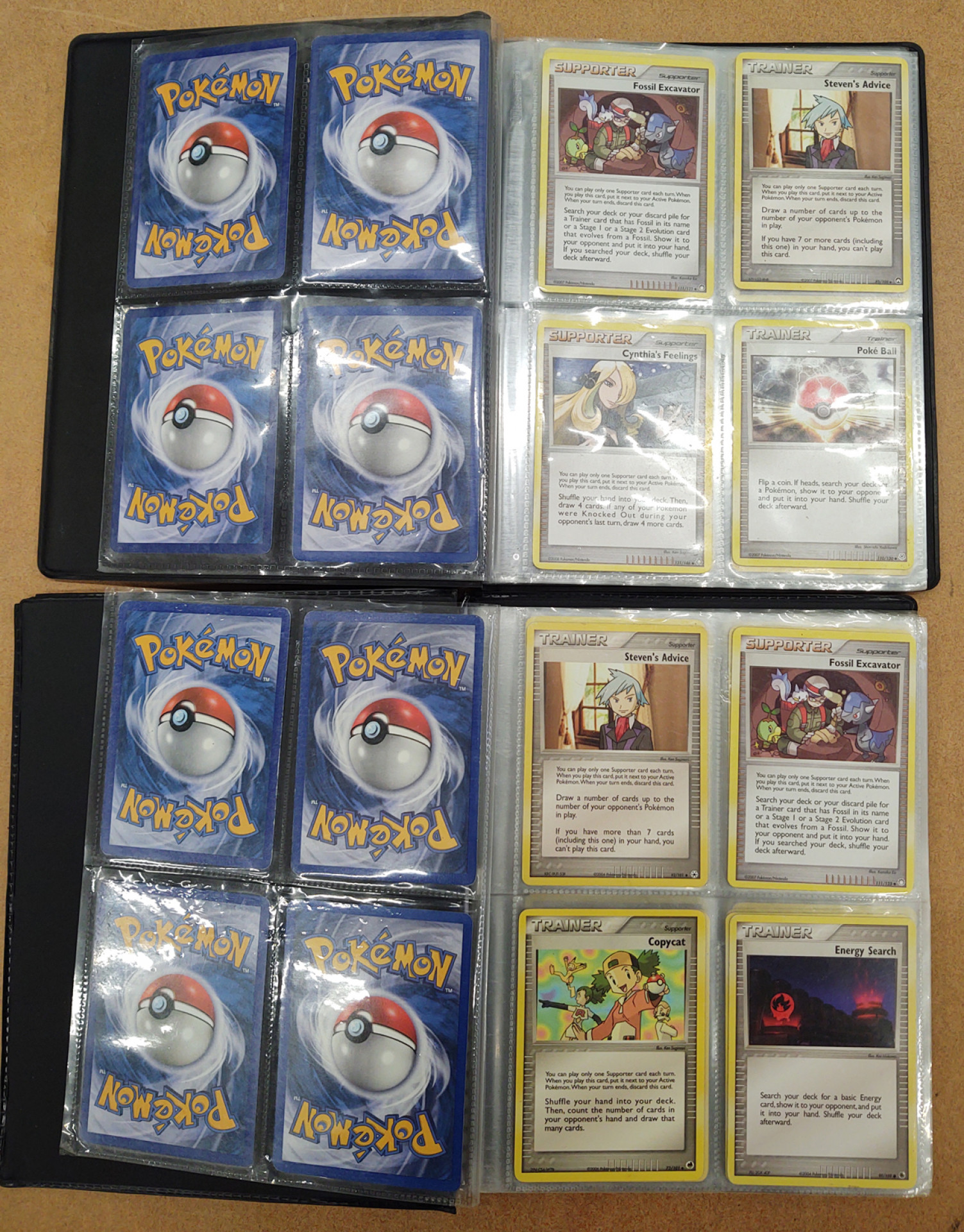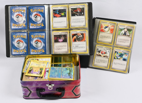 Pokemon, erä kortteja kahdessa pienessä kansiossa sekä rasiassa, yhteensä n. 800 korttia