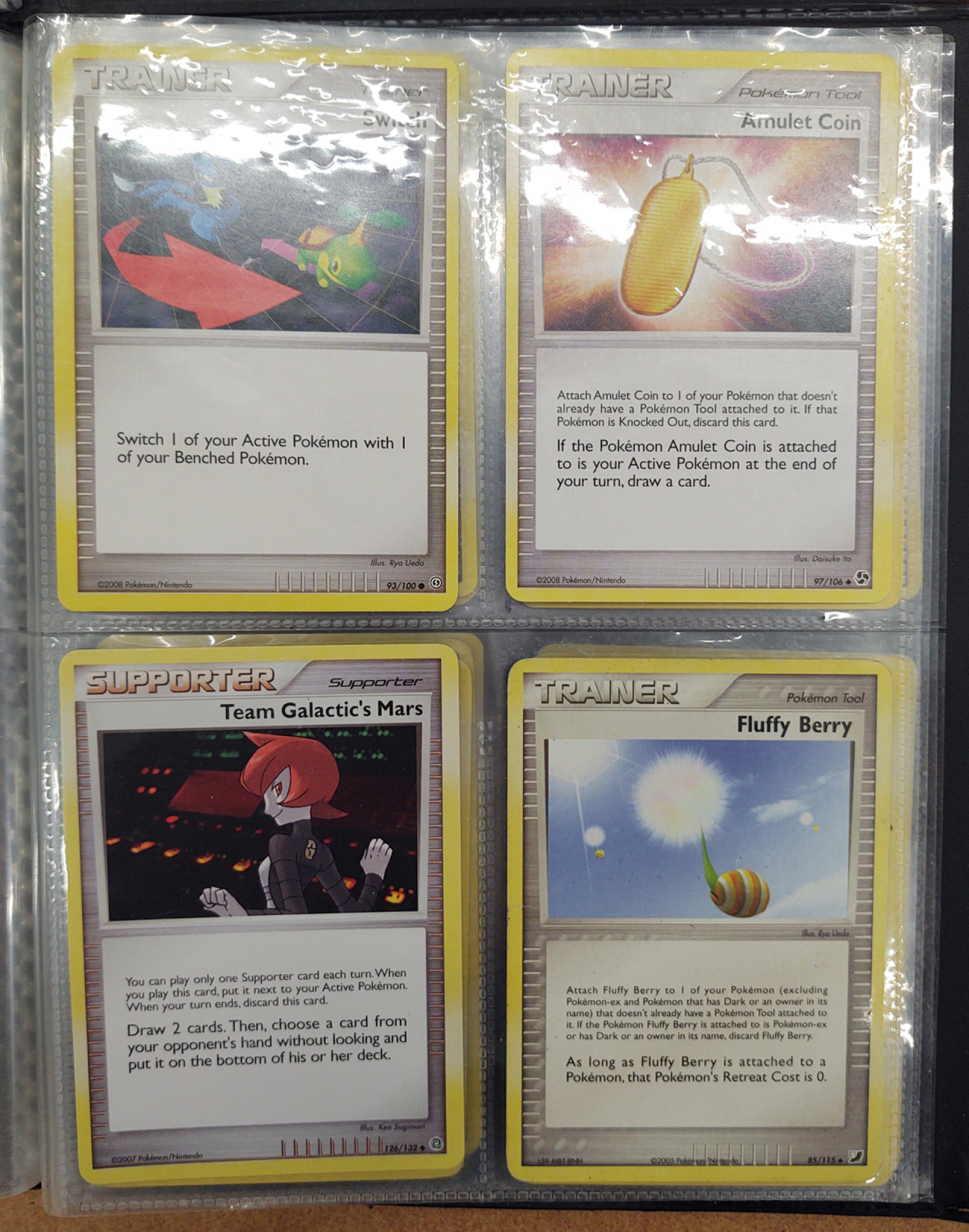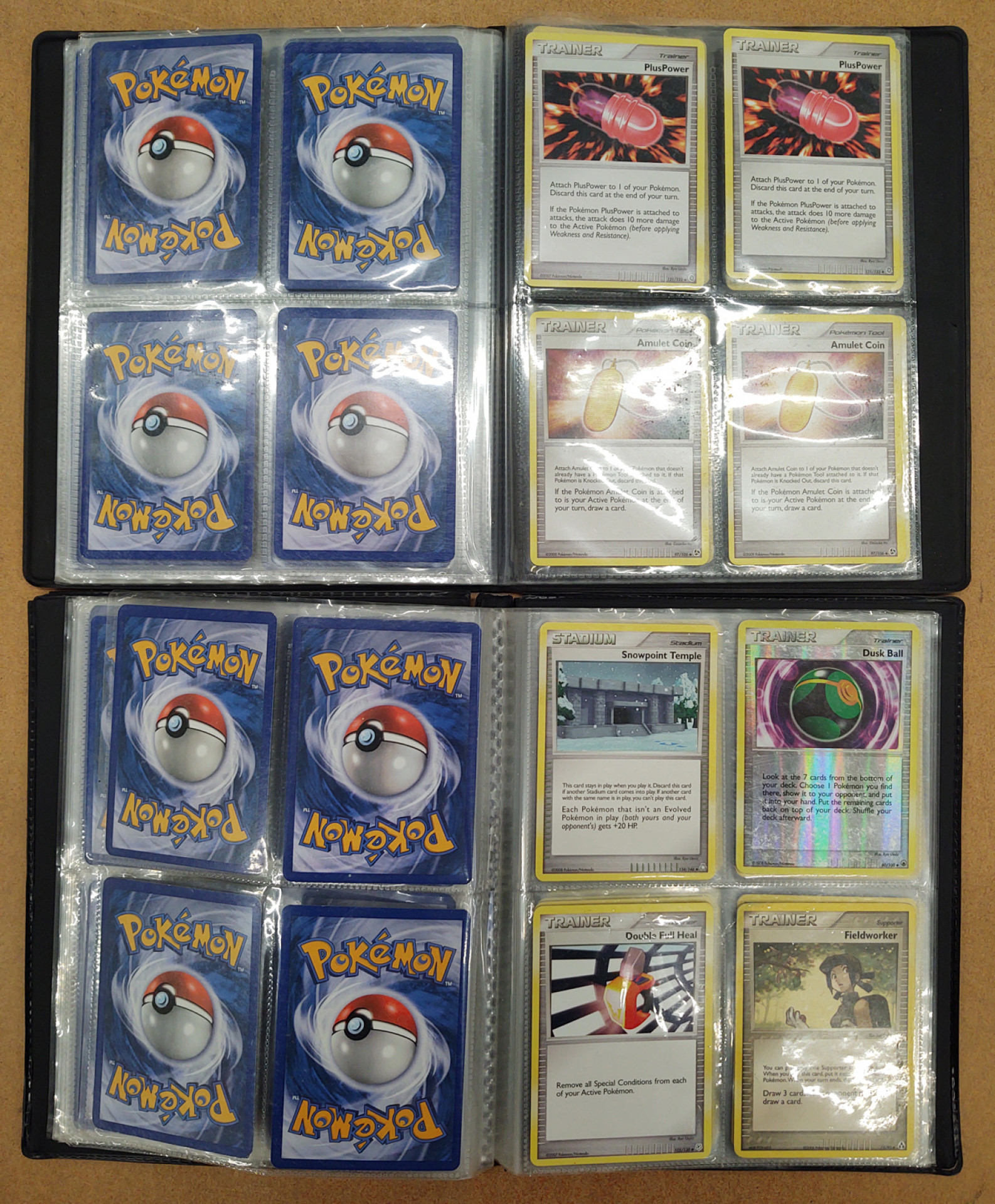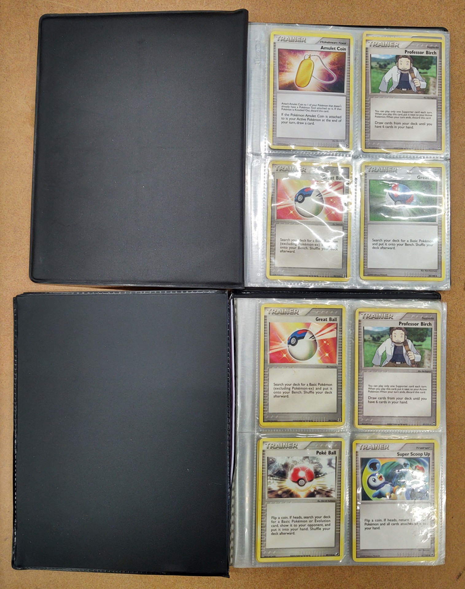 Pokemon, erä kortteja kahdessa pienessä kansiossa sekä rasiassa, yhteensä n. 800 korttia