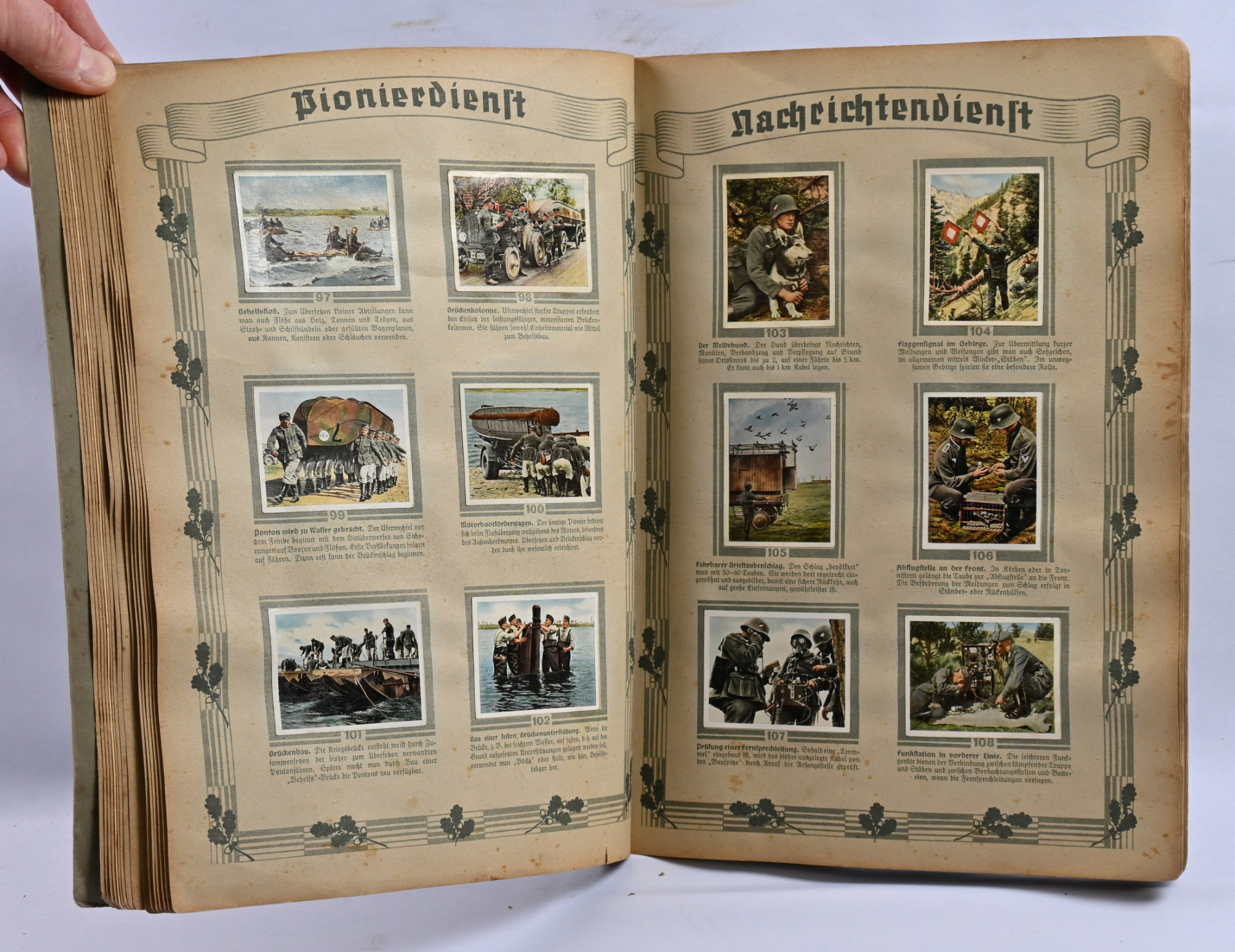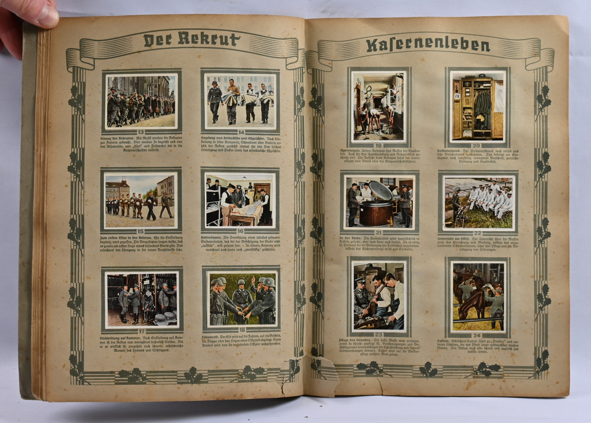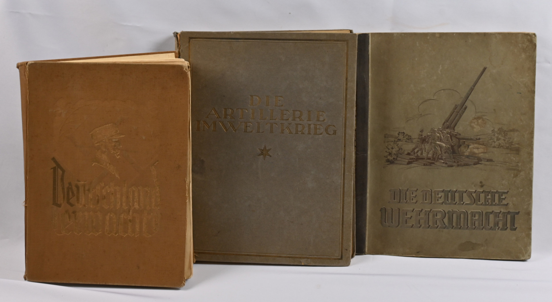 Saksalaiset keräilykorttikansiot ”Deutschland erwacht” ja ”Die deutsche Wehrmaht”. Kohtalaisen hyväkuntoiset kirjat, joissa kaikki kortit mukana. Lisäksi kirja ”Die Artillerie in Weltkrieg”, jossa runsaasti tietoa ja kuvia 1. maailmansodan tykistöstä