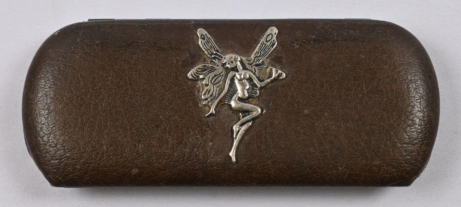 Hopeinen keijuhahmo silmälasikotelossa koristeena. Mukana myös vanhat silmälasit
