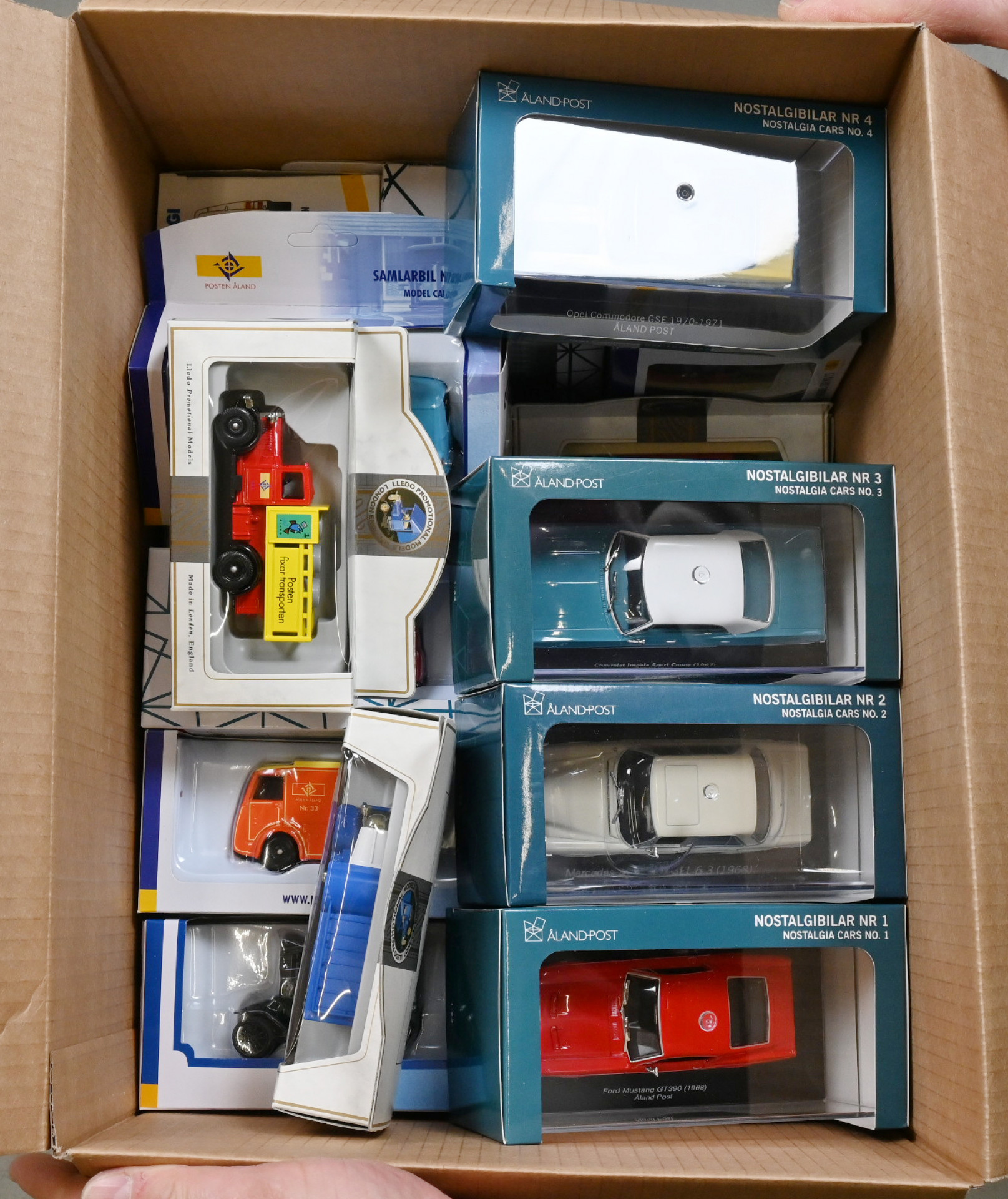 Lelut, Ahvenanmaan Postin keräilyautoja numerot 1-35, lisäksi 4 Ahvenanmaan Nostalgia-keräilyautoa. Yhteensä 39 erilaista