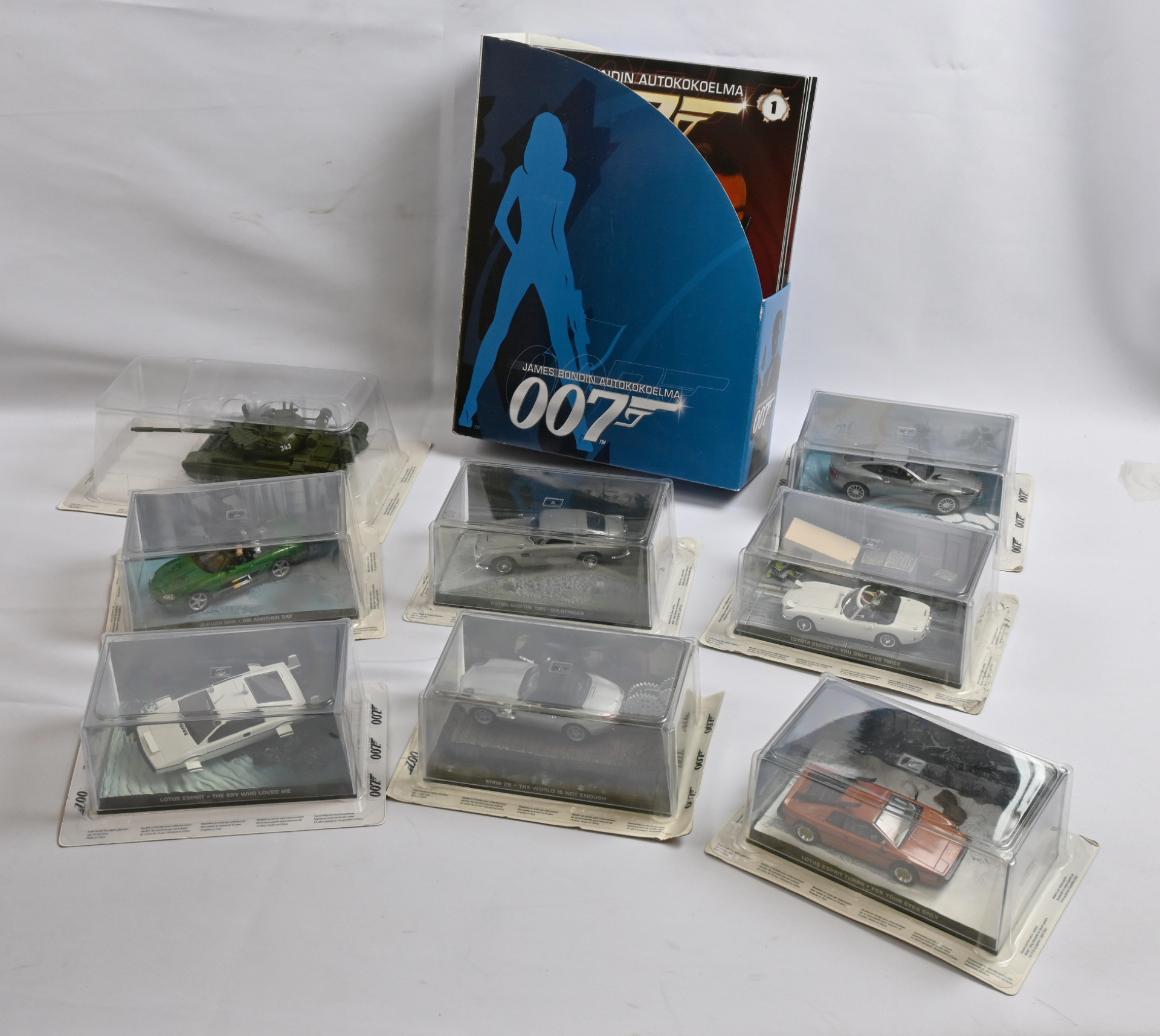 Lelut, James Bond -keräilyautoja ym. upea kokoelma 18 erilaista, lisäksi James Bondin autokokoelma -lehdet 1-17