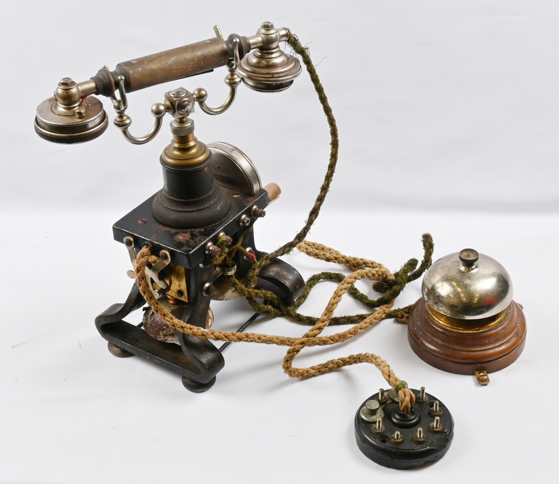 Puhelin vanha rautarunkoinen, L.M. Ericsson, paino yli 5 KG. 1900-luvun alusta, vähän ruostetta ja kulumaa, silti hyvä.