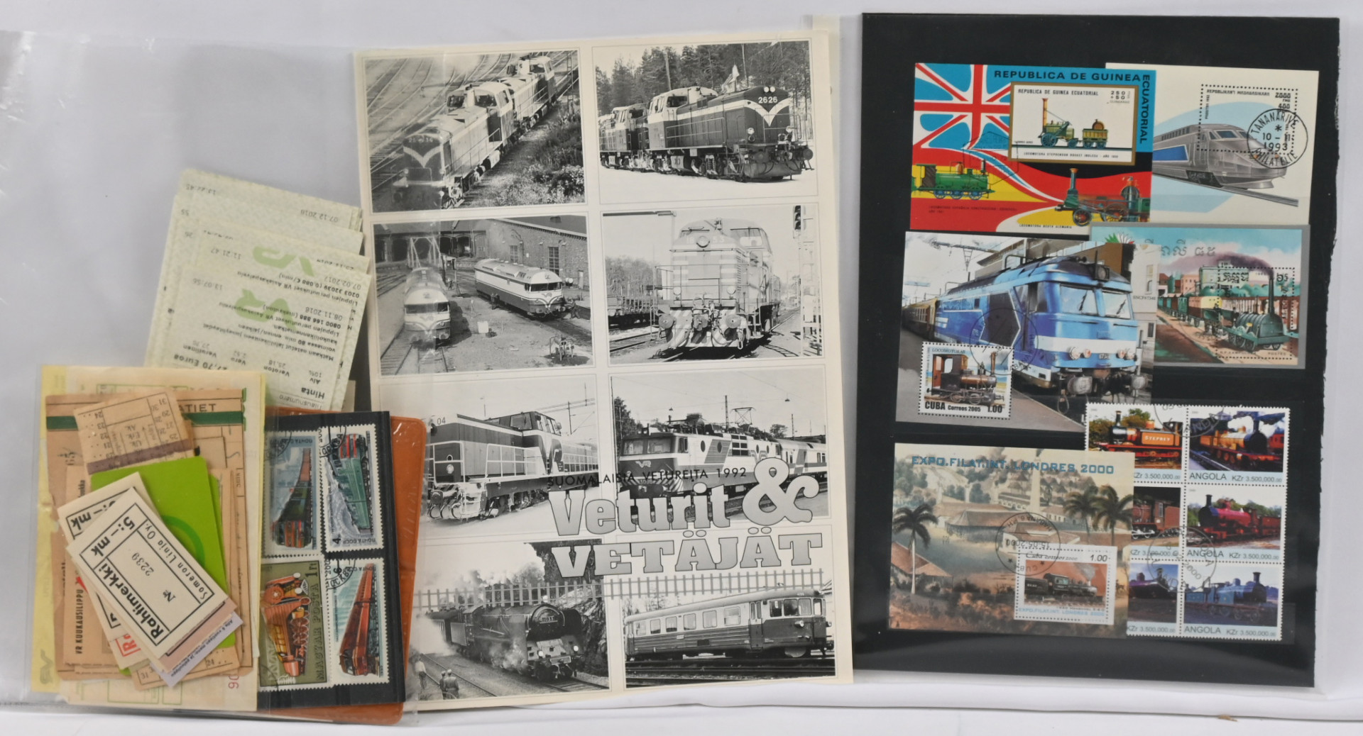 Rautateihin liittyvää kirjallisuutta viisi kirjaa, mm. ”VR Suomi - Dieselien aikaan” ja ”Juna Eurooppalaisessa maisemassa” ja ohut vihkonen ”Veturit & Vetäjät 1992”. Lisäksi vähän muuta juniin liittyvää materiaalia, postikortteja, pienoisarkkeja, matkalippuja ym