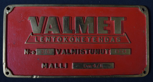 Rautatie, veturin valmistajan (Valmet) tyyppikilpi numero 216, veturi Dm4 / II. Koko n. 28,5x14 cm