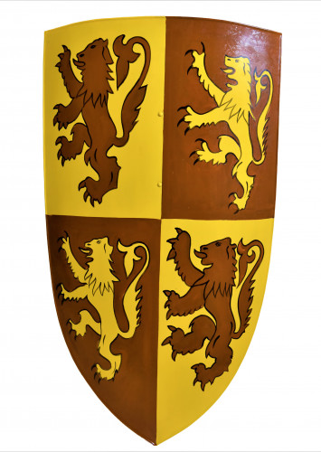 Taistelukilpi, keskiaikaisen leijonakilven replika, korkeaus 82 cm, RAS-08, käsintehty