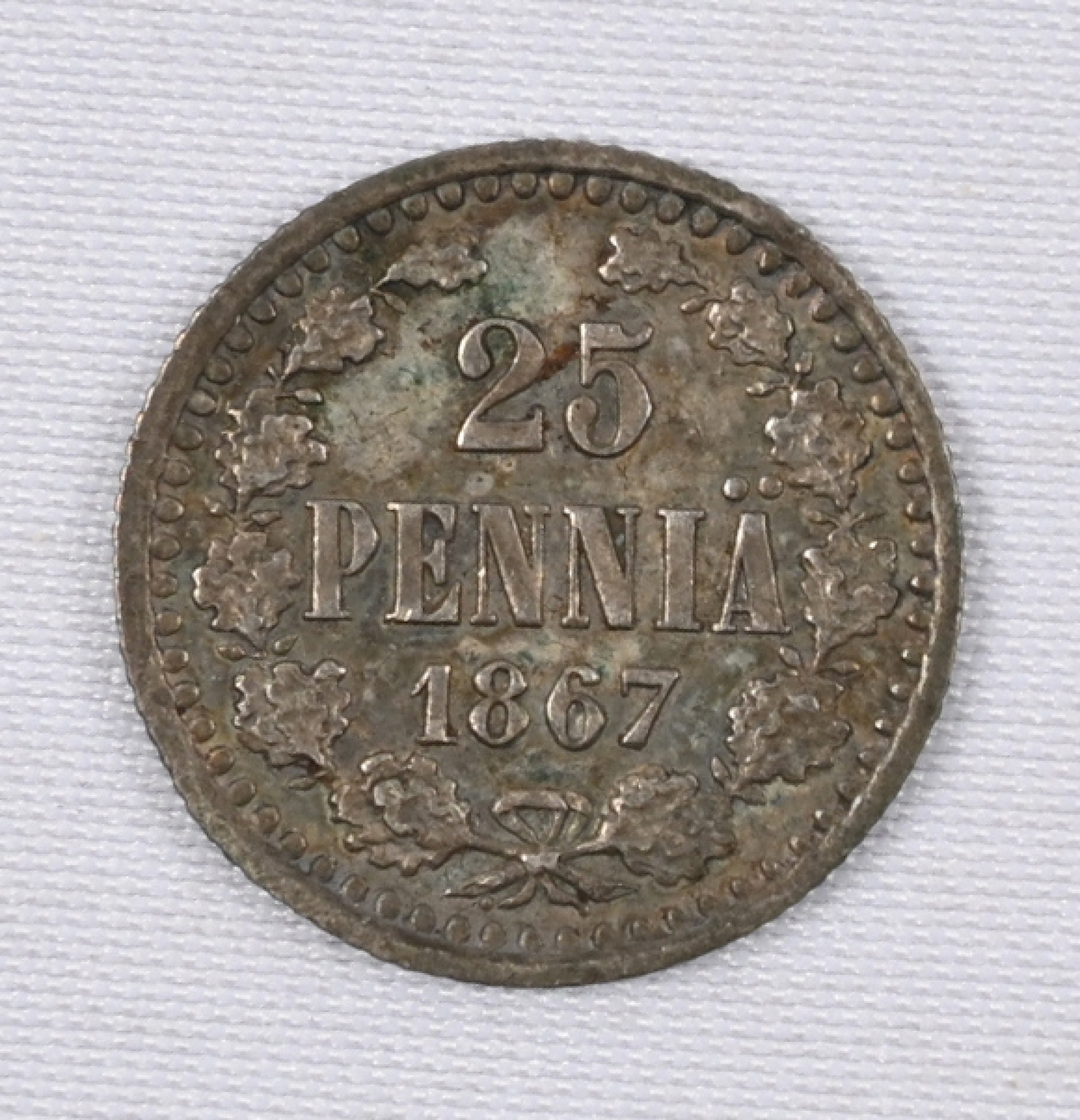 1867 25 penniä hopeaa, harvinainen. Kl 1?