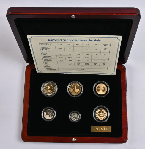 2001 Jäähyväiset markalle -kokoelma, jossa myös kultainen jetoni. Aitoustodistus