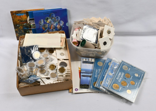Kiintoisa erä kolikoita ym yli 4 KG alkaen 1800-luvun hopeakolikoista myös joitain pötköjä ja rahasarjoja jne