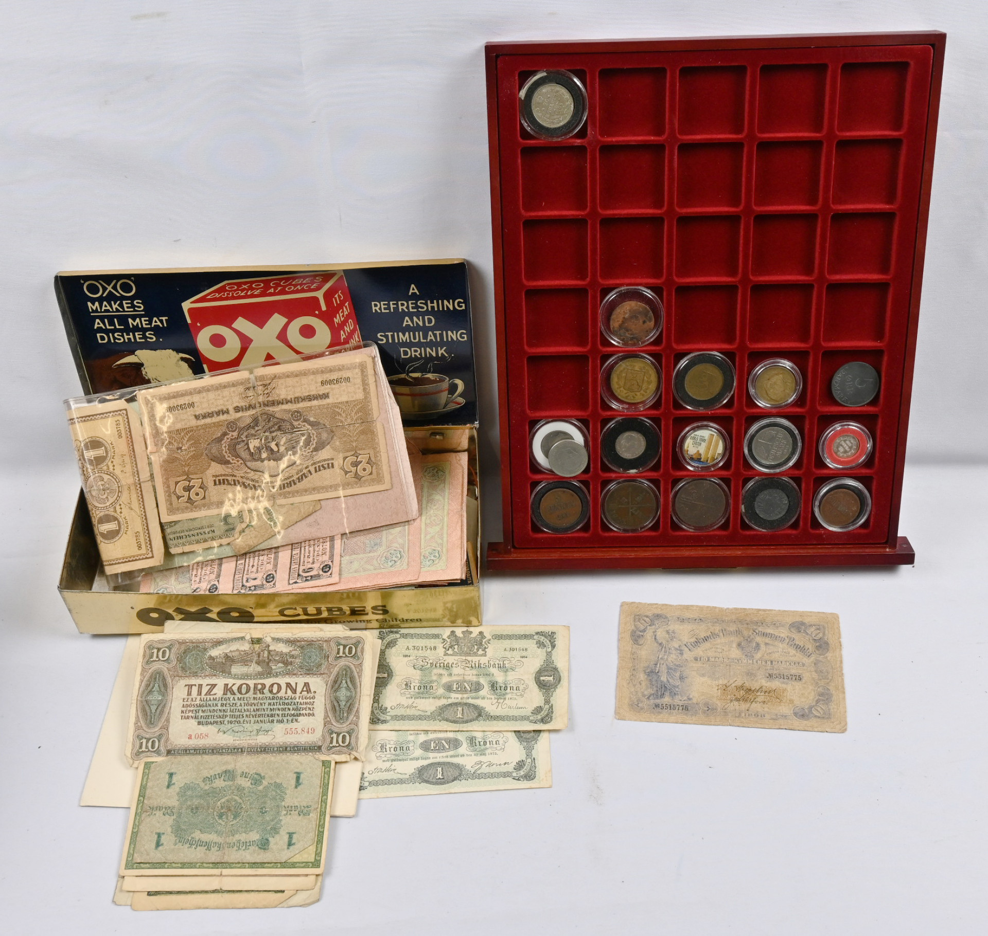 Kolikoita ja joitain seteleitä ulkomailta ja Suomesta noin 5 KG