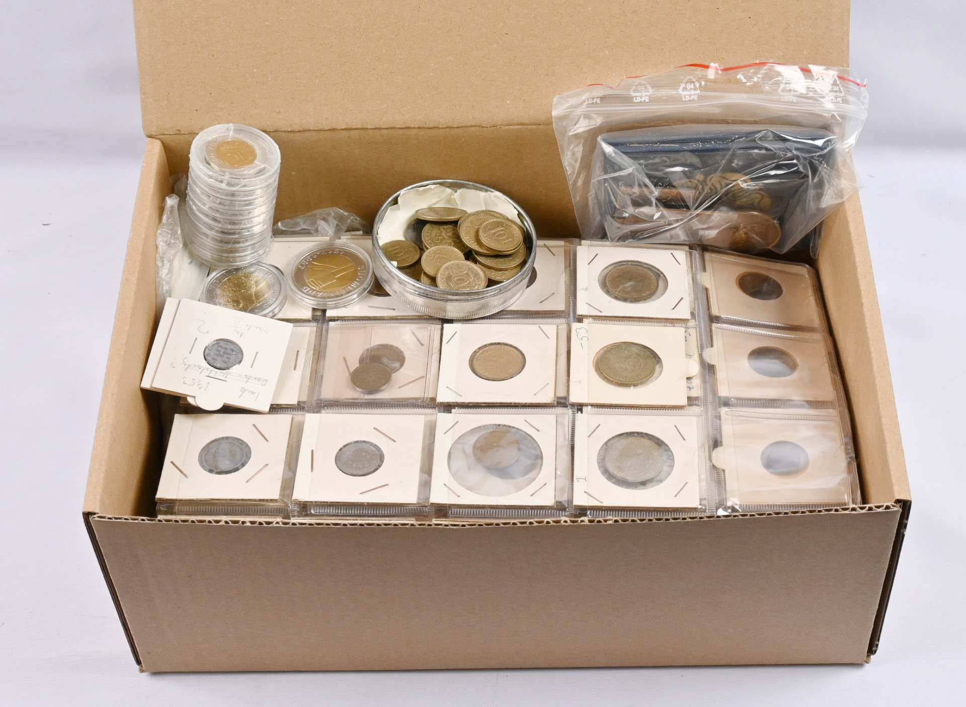 Markka-ajan kolikoita tsaarinajalta vuoteen 2000 hyvä löytöerä 8 KG laatikossa. Osin koteloissa säilytyslehdillä ja pääosin pusseissa lajiteltuna. Myös rullia / osia. Mm. iso pussillinen tsaarinaikaa, myös hopeaa. Lisäksi vähän Ruotsin ja USA:n kolikoita